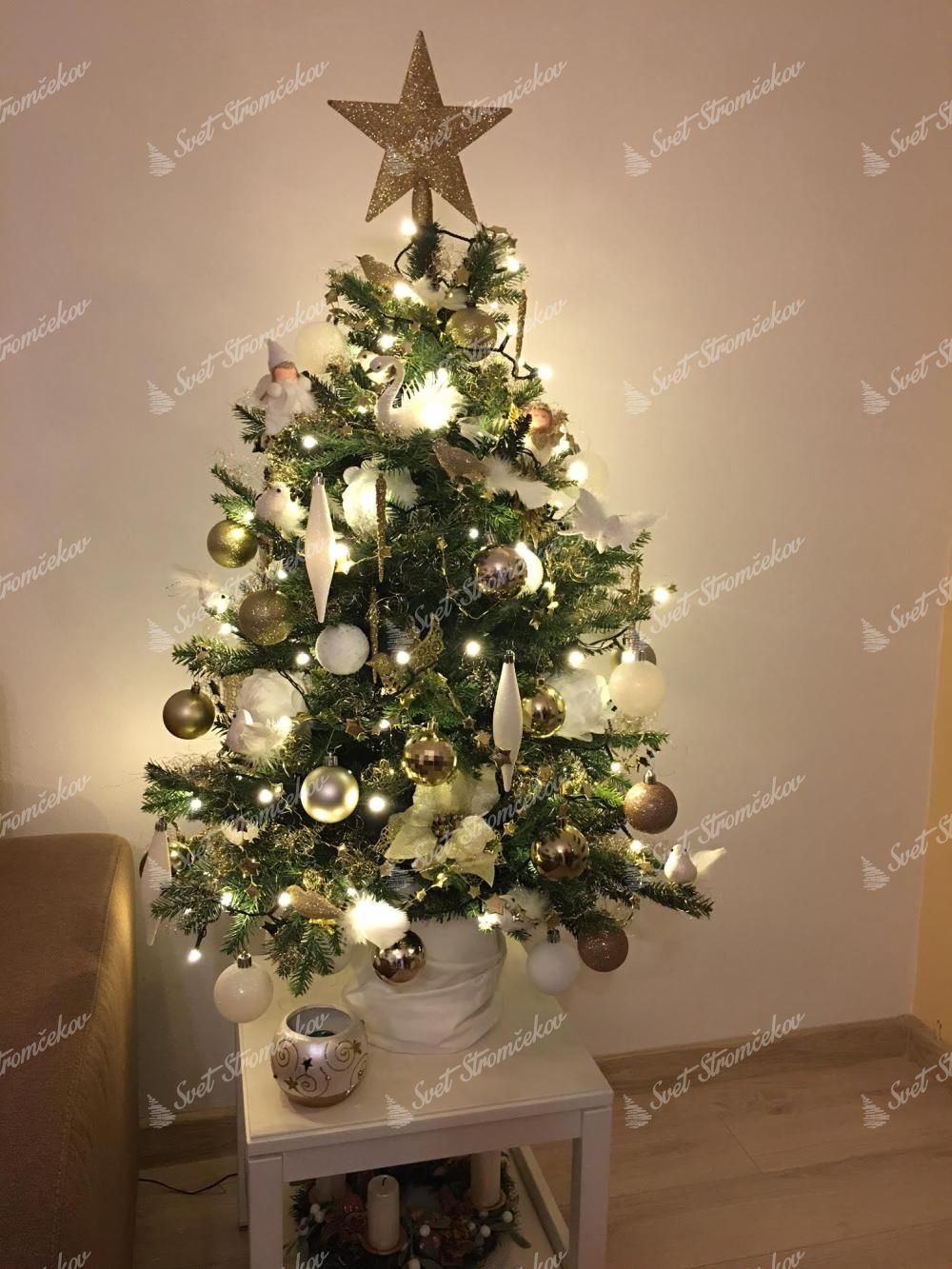 Další výhodou je, že na ozdobování takového stromku nepotřebujete mnoho ozdob. Stačí vám pár vánočních koulí či jiných dekorací a malý umělý vánoční stromeček je ozdoben. Nebo si můžete vytvořit čistě jen malý vánoční stromek s osvětlením bez jiných ozdob.