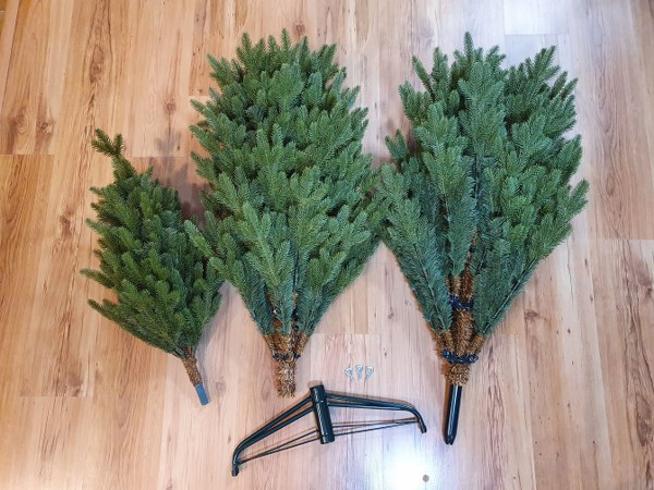 Při stavění vánočního stromku je nejdůležitější vybrat si vhodné místo s dostatkem prostoru na jeho rozložení. Každý stromek, který si od nás zakoupíte, je rozložen a uložen v krabici tak, aby zabral co nejméně místa. Po rozbalení krabice zkontrolujte její obsah. Vánoční stromky ve velikostech do 150 cm se skládají z jedné části, zatímco stromky ve velikostech od 180cm jsou složeny z 3 částí. Balení obsahuje kromě samotného stromečku také stojan na stromeček. Druh stojanu, který budete mít v krabici, závisí na typu stromku, který si objednáte. Obdržíte buď kovový stojan, se kterým obdržíte i šrouby na zatažení kmene stromku nebo stojan umělý, který sestává v závislosti na výšce stromku v rozloženém stavu ze 3 nebo 4 nožiček.
