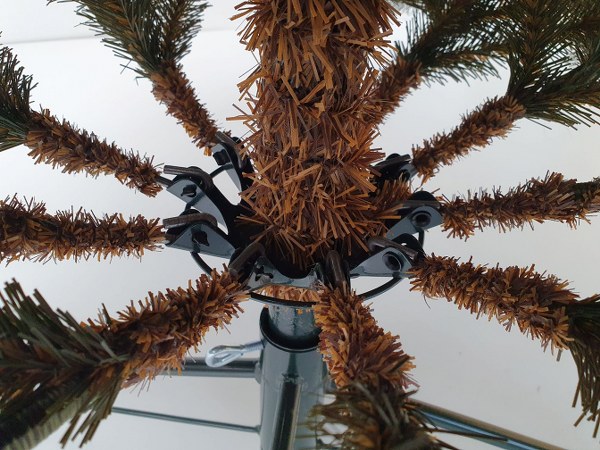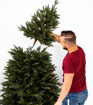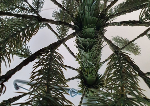 Větve stromečku necháme volně padnout na své místo, nebo je jemně stáhneme dolů. U tohoto systému si nemusíte dělat starost s umístěním do 90° úhlu, protože větve přesně zapadnou do předurčených žlebů a stromek tak bude mít dokonalý tvar. Po roztažení první (spodní) rady větví začneme roztahovat samotné větvičky.