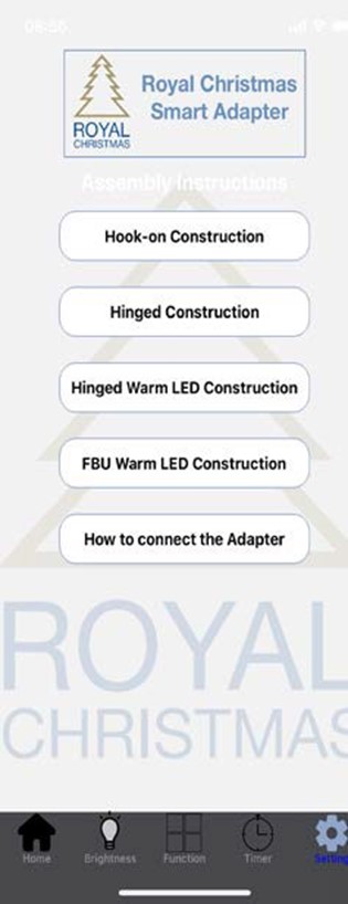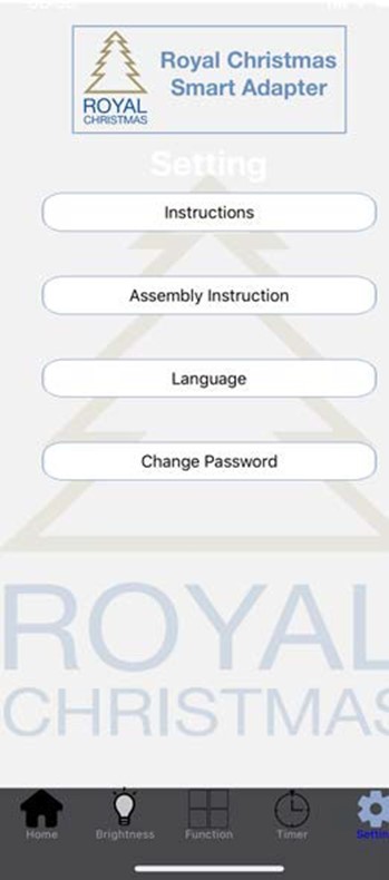 Nastavení mají 4 kategorie: Instructions, Assembly Instructions, Language, Change Password. Když kliknete sa „Assembly Instructions“ , najdete instrukce jak sestavit svůj stromek.