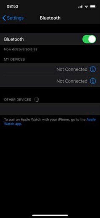 Otevřete aplikaci a ujistěte se, že jste připojeni na Bluetooth (v nastaveních).
