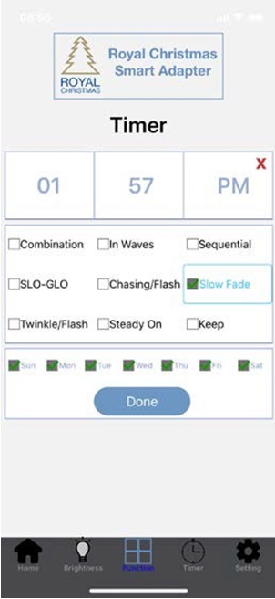 Na stránce „Timer“ klikněte na „Add Timer“ a ve čtverečcích táhněte prstem nahoru a dolů abyste nastavili čas. Můžete si zvolit jeden z módů a vybrat dny, pre které bude daný časovač platit.