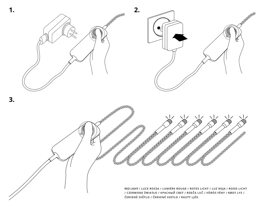 Zapojte napájecí adaptér do zásuvky a světla se rozsvítí.