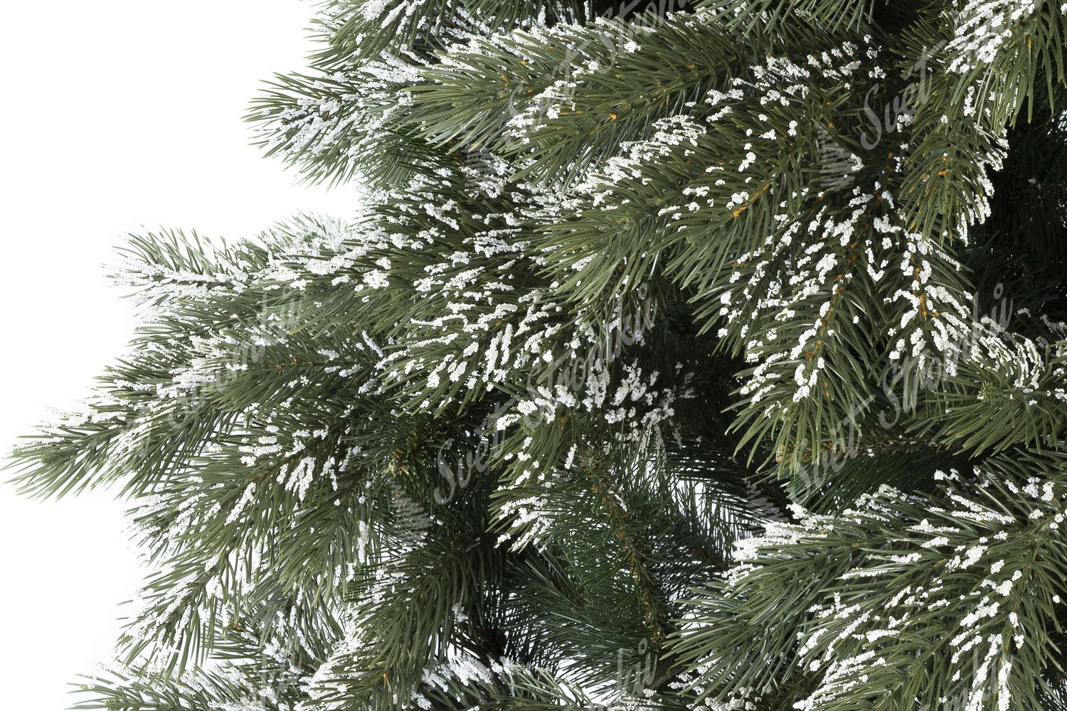 Detailní fotka zasněženého 3d jehličí umělého vánočního stromku 3D jedle Zasněžené