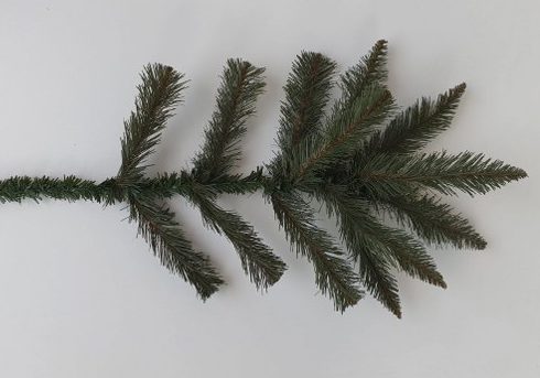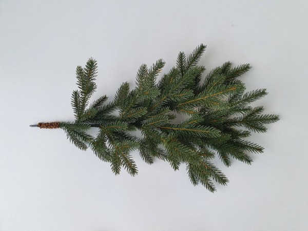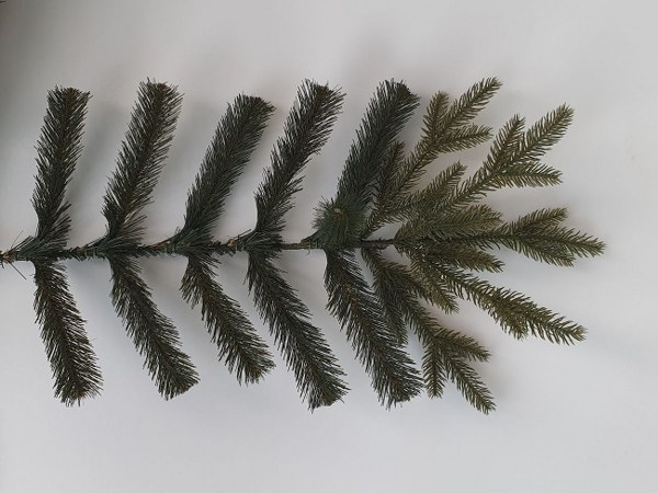Detail větviček s 3D jehličím které jsou k nerozeznání od živých větviček jídla.