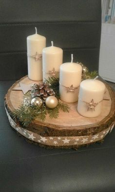Původní adventní věnce byly jednoduché, skromné a tvořené z přírodních materiálů. Vyrobte si tento tradiční věnec na stůl, nebo andventní věnec na dveře i vy z kousku kmene stromu. Věnec může mít různé tvary. Ať už se rozhodnete pro podlouhlý adventní věnec, čtvercový nebo kulatý, hravě to zvládnete. Jak na to? Na kousek kmene si jednoduše nalepte svíčky a tento adventní věnec na dřevě můžete dozdobit šiškami, chvojinou, vánočními koulemi nebo jinými ozdobami. Pokud jdete vyrábět advetní věnec na dveře, stačí vám jen malé kusy dřeva, které spolu slepíte do tvaru kruhu a dozdobíte stuhou.