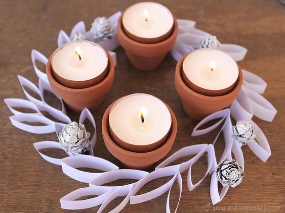A co tak použít truhlíky nebo květináče na výrobu adventního věnce na stůl? Je to docela jednoduché. Truhlík si naplňte chvojinou, šiškami, sušeným ovocem či jinými ozdobami a vsaďte do něho adventní svíčku. Když si tyto květináče vytvoříte čtyři a vkusně je uložíte, vznikne vám jedinečný keramický adventní věnec.
