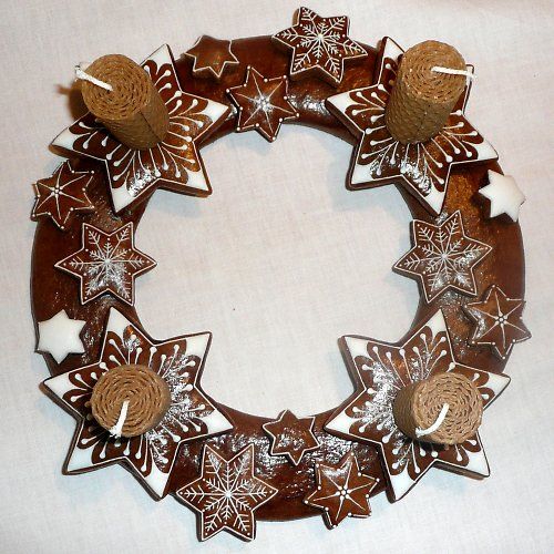 K Vánocům neodmyslitelně patří vůně vánočních perníčků. Tak proč si z tohoto chutného vánočního pamlsku nevyrobit i adventní věnec? Adventní věnec z perníku si vyrobíte tak, že si z těsta vykrojíte perníčky požadovaného tvaru, které po upečení ozdobíte cukrovou polevou a přilepíte k sobě tak, abyste z něj vytvořili tvar věnce, jaký chcete.