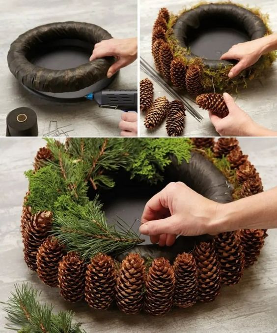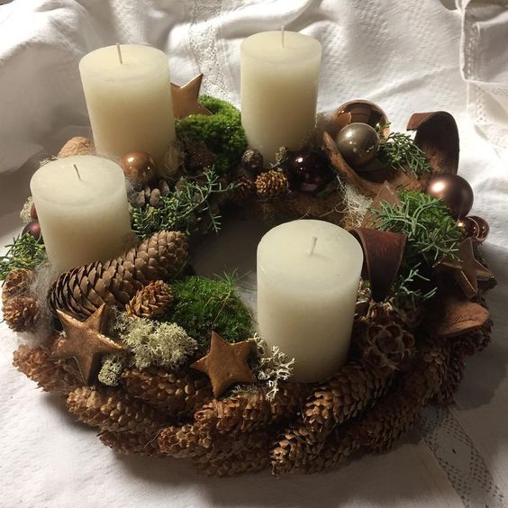Přírodní adventní věnec ze šišek a jiných lesních plodů lze vyrobit skutečně lehko. Ozdoby na adventní věnec v tomto případě nebudete potřebovat. Bude vám stačit pouze polystyrenová podložka ve tvaru věnce, na kterou pomocí tavicí pistole připevníte šišky. Adventní věnec přírodní ze šišek se může lišit velikostí šišek, případně jejich kombinací a dalšími použitými materiály. Přírodní adventní věnec lze dozdobit živým chvojím, mechem, oříšky, či sušeným ovocem.