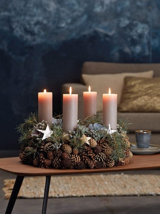 Přírodní adventní věnec ze šišek