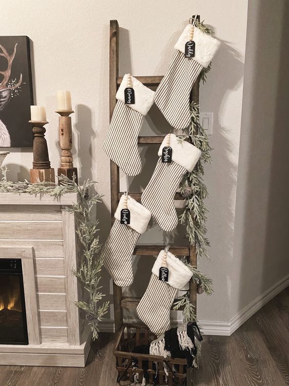 Krásné vánoční dekorace do bytu si umíte jednoduše vyrobit i prostřednictvím starého dřevěného žebříku, na který upevníte chvojí a vánoční ponožky, do kterých vám Mikuláš přinese dárky. Samozřejmě pouze když jste poslouchali.