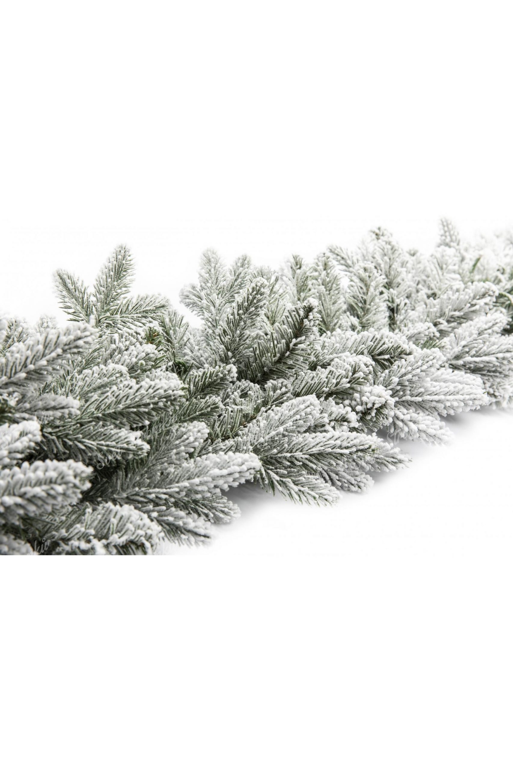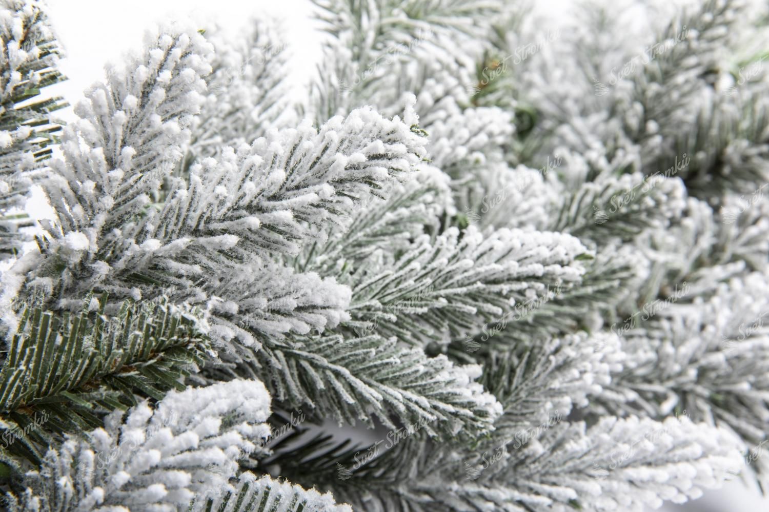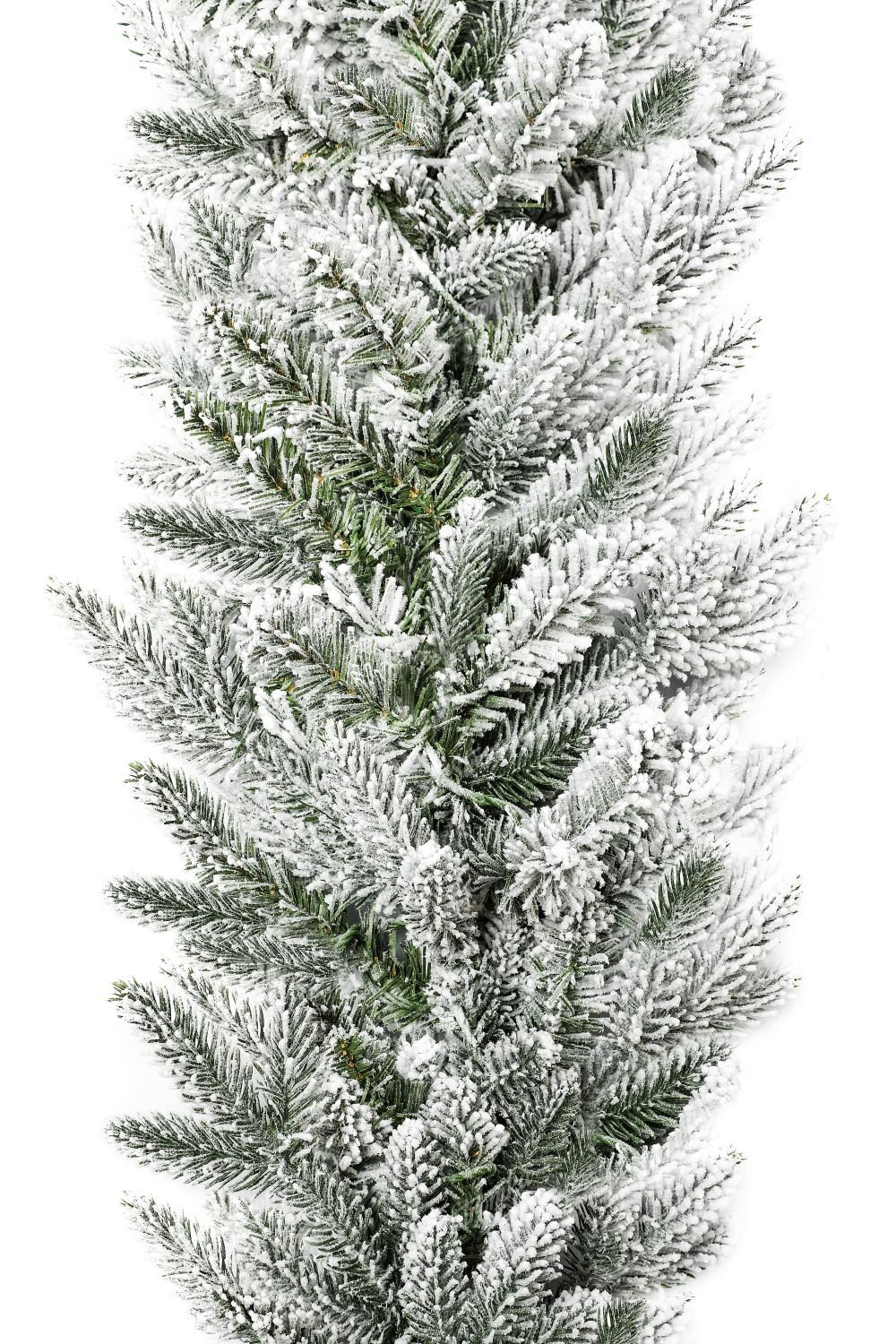 Girlanda je tvořena kombinací PVC a 3D větviček, které jsou uprostřed přirozeně zelené barvy, zatímco na jejich koncích jsou zasypané sněhem, který je na nerozeznání od toho pravého. Girlanda 3D Smrk Královský ma délku 2,7m a šířku 30cm.