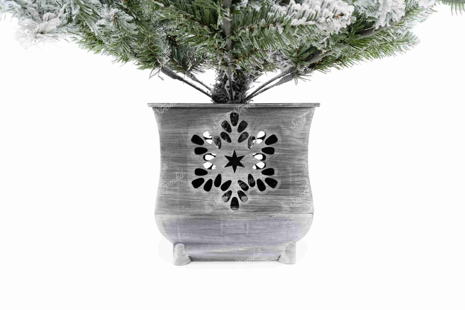 Naše novinka 2024 – umělý vánoční stromeček v květináči Smrk Aljašský má jedinečné hustě zasněžené smrkové větvičky, které vytvářejí neuvěřitelnou zimní atmosféru. Umělý sníh je nanášen pomocí nejnovějších technologií a neopadává. Při prvotním rozložení může dojít k uvolnění nezachycených částí.
