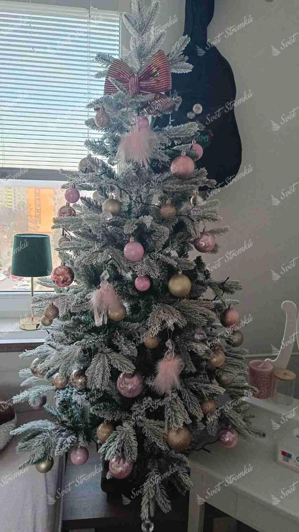 umělý vánoční stromeček 3D, výška 150cm, šířka 73cm, typ jehličí 3D (PE) + PVC, zasněžené smrkové 3D jehličí, provedení – hustý, délka špičky 20cm, stojan – květináč, počet částí – 2