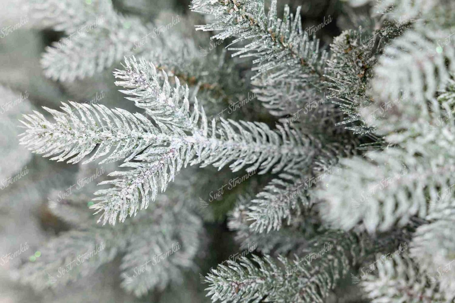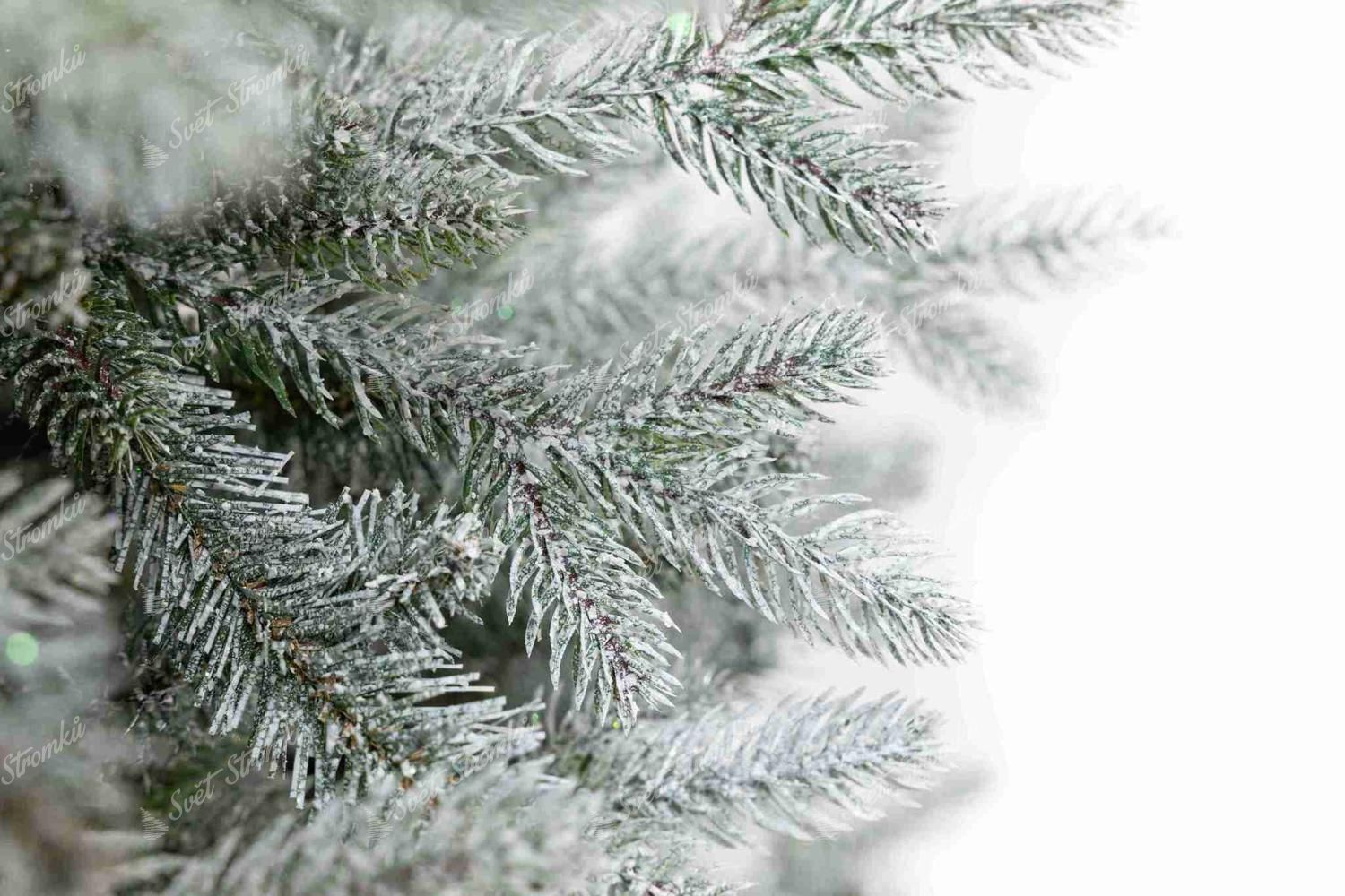 Kombinace bílých, mrazivých jehliček a jemného posypu sněhu spolu se třpytkami dodává stromku exkluzivní vzhled, jako by byl právě čerstvě pokryt zimním mrazem.