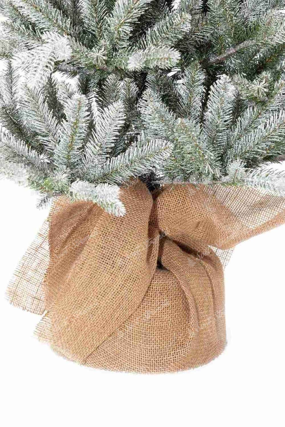 Stromeček je osazen v květináči, který je obalen jutovinou. Je ideální a praktickou dekorací, která dotvoří vánoční atmosféru.