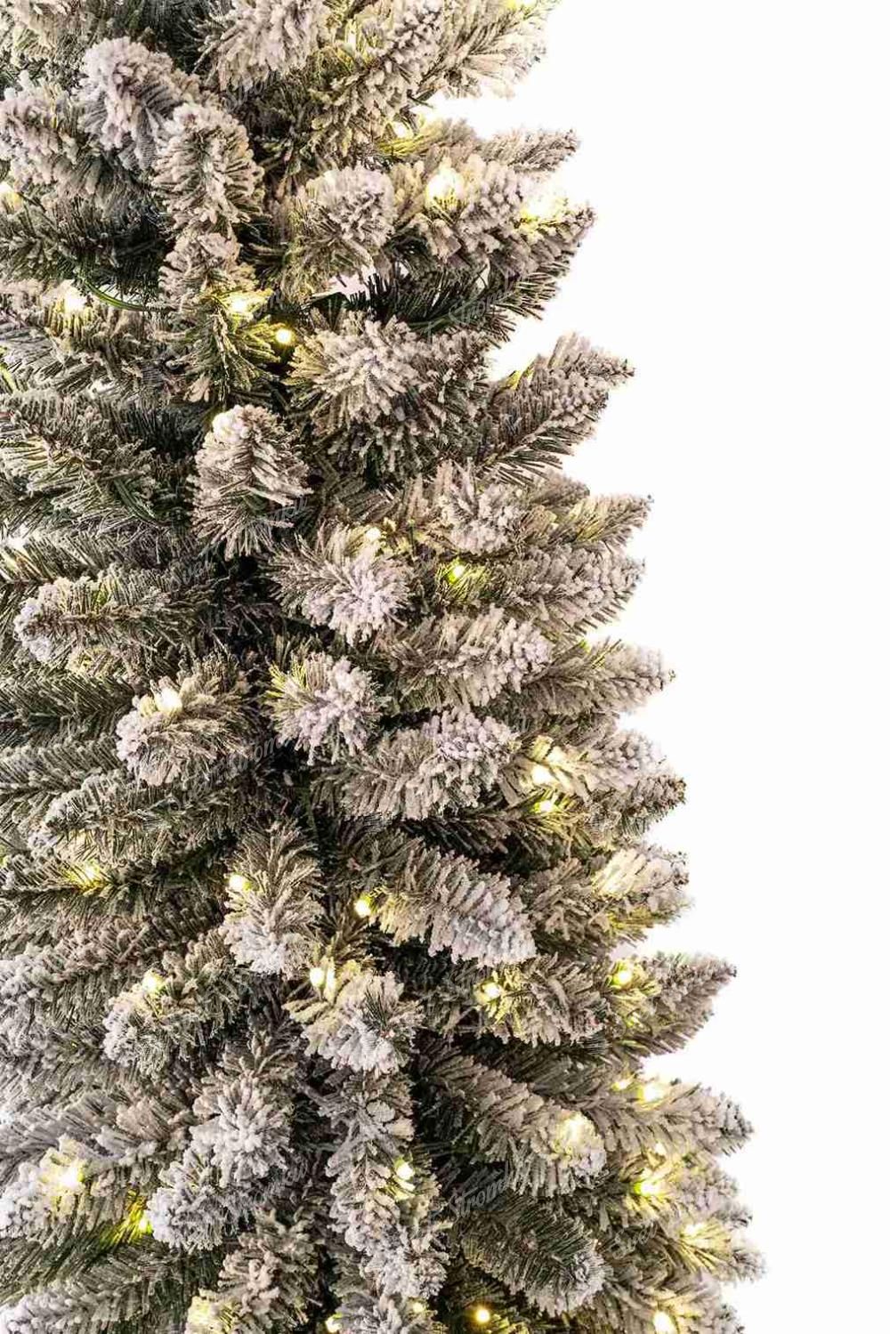 Novinka sezóny 2024 – moderní zasněžený stromek v úzké verzi Smrk Bílý Štíhlý LED vykouzlí nezapomenutelnou zasněženou atmosféru díky smrkovým PVC větvičkám, které jsou hustě pokryty realistickým umělým sněhem. Umělý sníh je nanášen pomocí nejnovějších technologií a neopadává. Při prvotním rozložení stromku může dojít k uvolnění nezachycených částí sněhu.