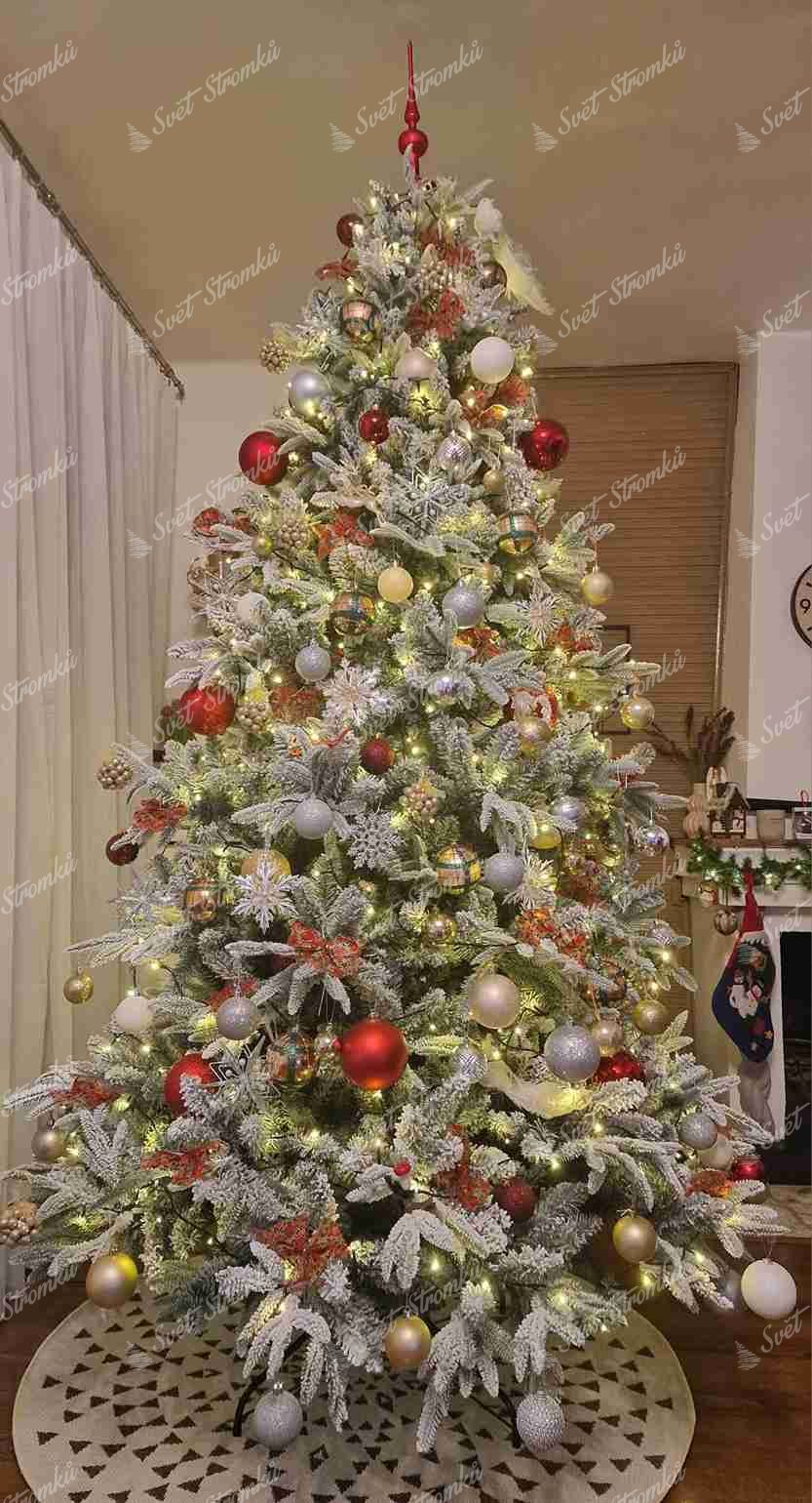 3D jehličí je po celém obvodu stromku doplněné o klasické PVC jehličí, které je hustě zasněžené. S pomocí nejnovějších technologií jsou postupně na celý stromeček aplikované vrstvy umělého sněhu, který ze stromku neopadává. Střed stromečku sestává z tmavozeleného jehličí, přičemž konce větviček jsou hustě zasněžené. Při prvotním rozkládání větviček dochází k uvolnění nezachycených částí sněhu.