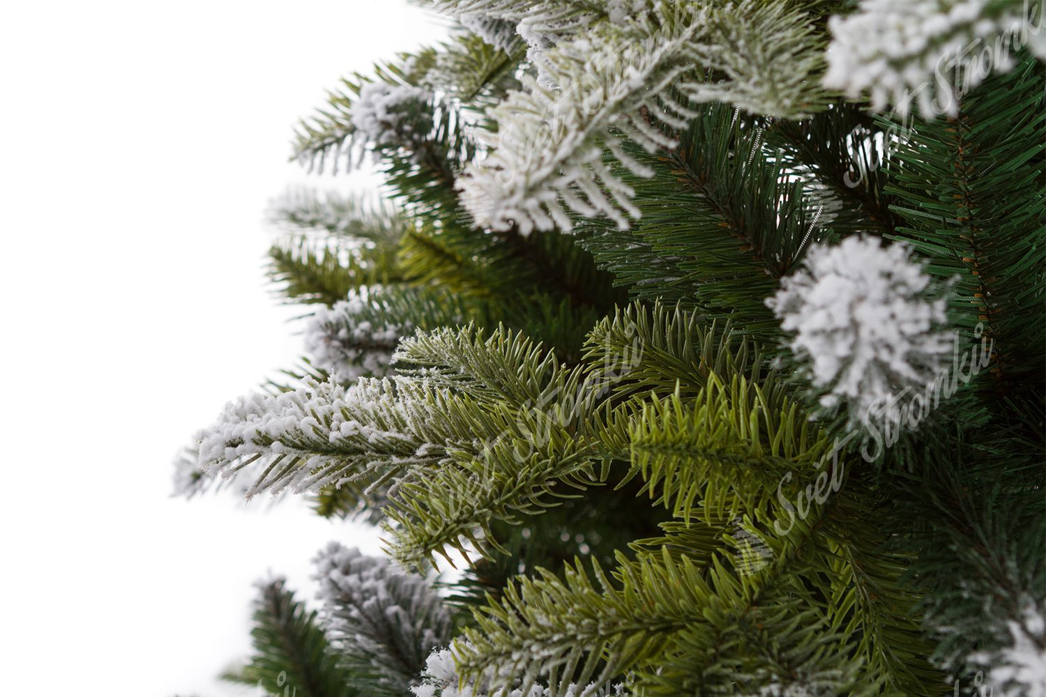 Kromě 3d jehličí je stromeček doplněn klasickým PVC jehličím, které je taktéž na koncích větviček zasněžené, čímž dokonale imituje živý zasněžený stromeček.