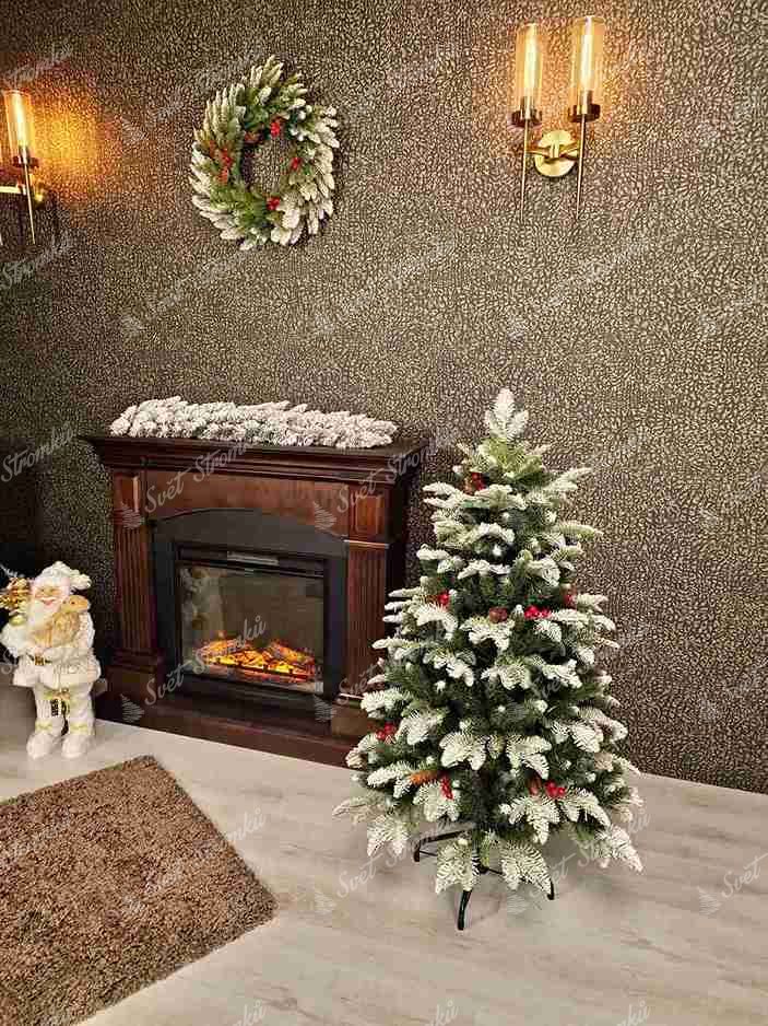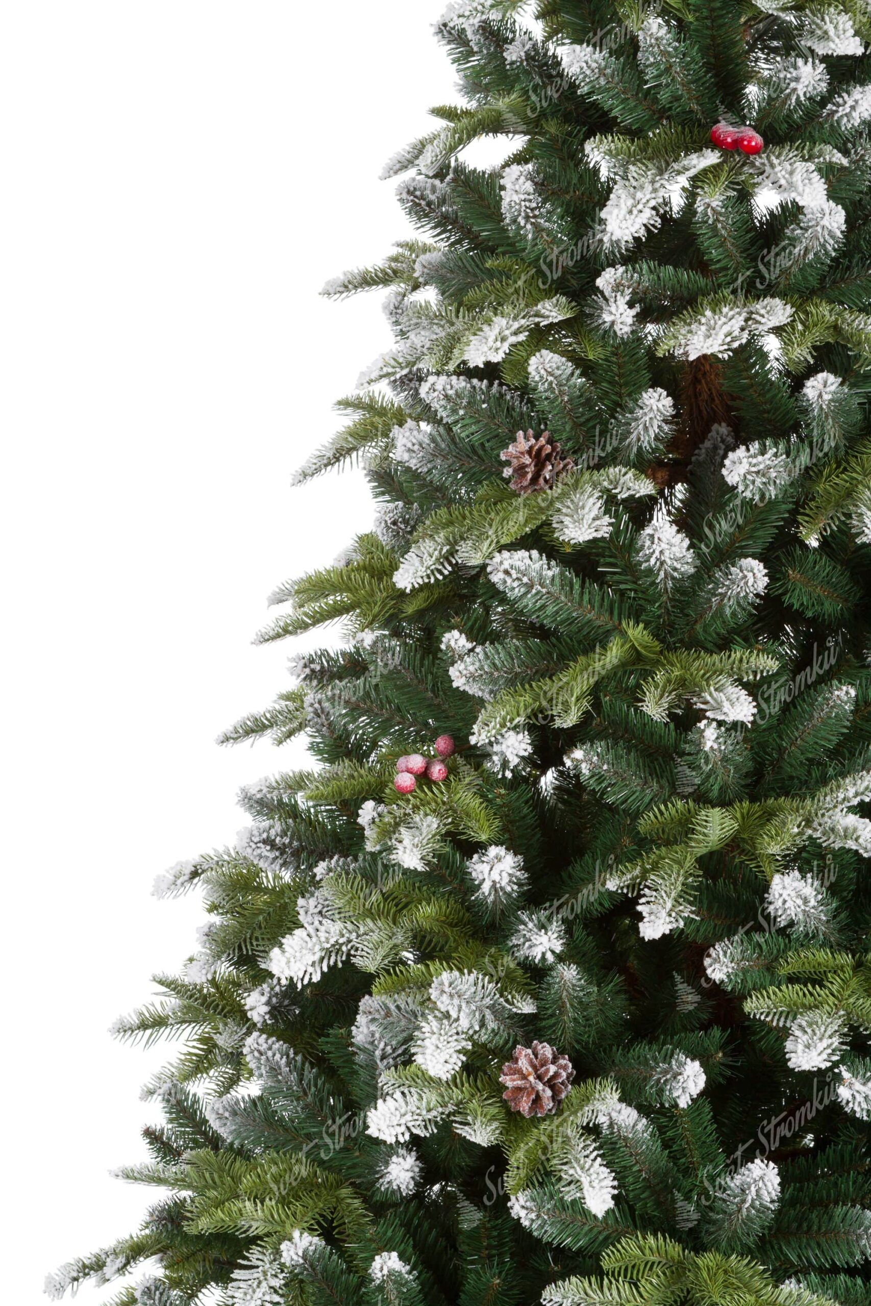 Umělý vánoční stromek 3D Jedle Zasněžená se vyznačuje hustě zasněženými větvičkami po okrajích celého stromečku. 3D jehličí je doplněno i zasněženými šiškami a lesními plody, díky kterým má stromek nádherný tradiční vzhled.
