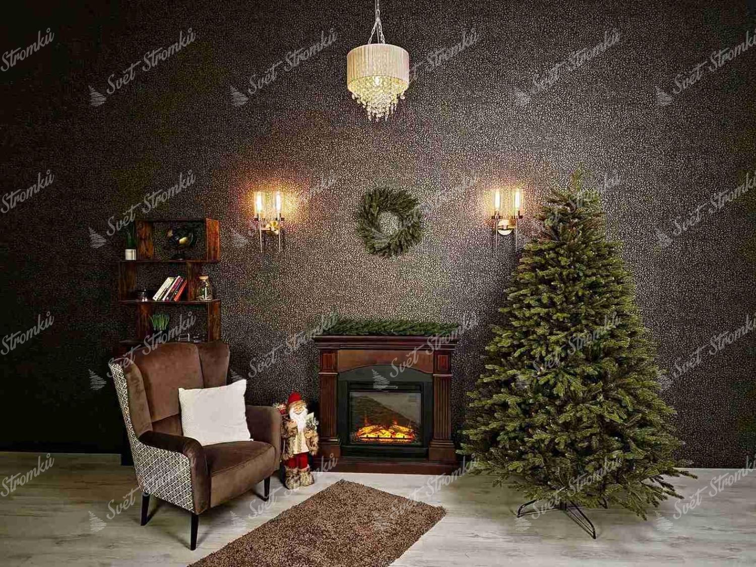 Konce větví jsou ukončeny až 6 x 3D větvičkami . Realistické 3D jehličí je dokonalý gumový odlitek skutečné větvičky, díky čemuž je k nerozeznání od té živé . Stromek je uprostřed zahuštěný klasickým PVC jehličím, což mu dodává bohatý a hustý vzhled. Samozřejmostí je i propracovaný hnědý střed stromečku.