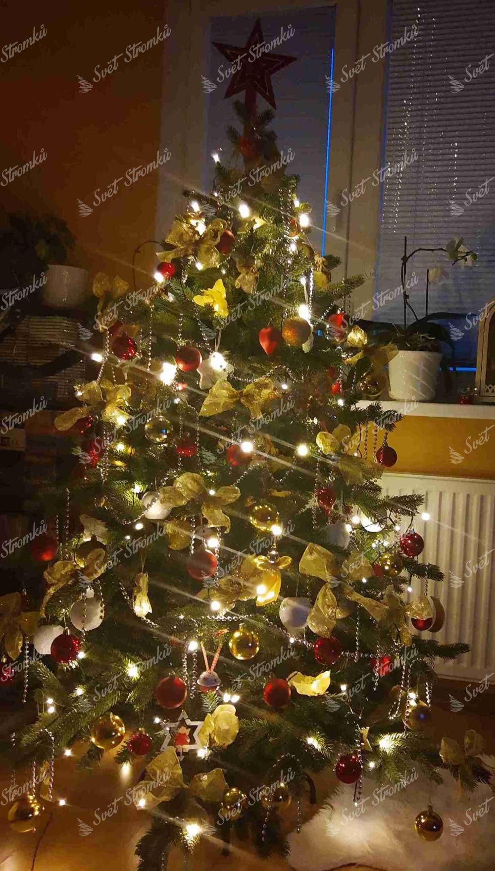 Vánoční stromek jako živý, ještě neusazený, ale vypadá dobře.