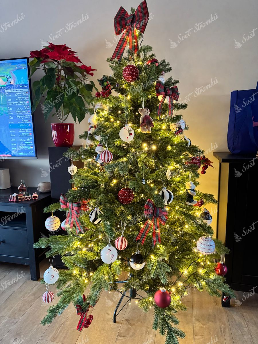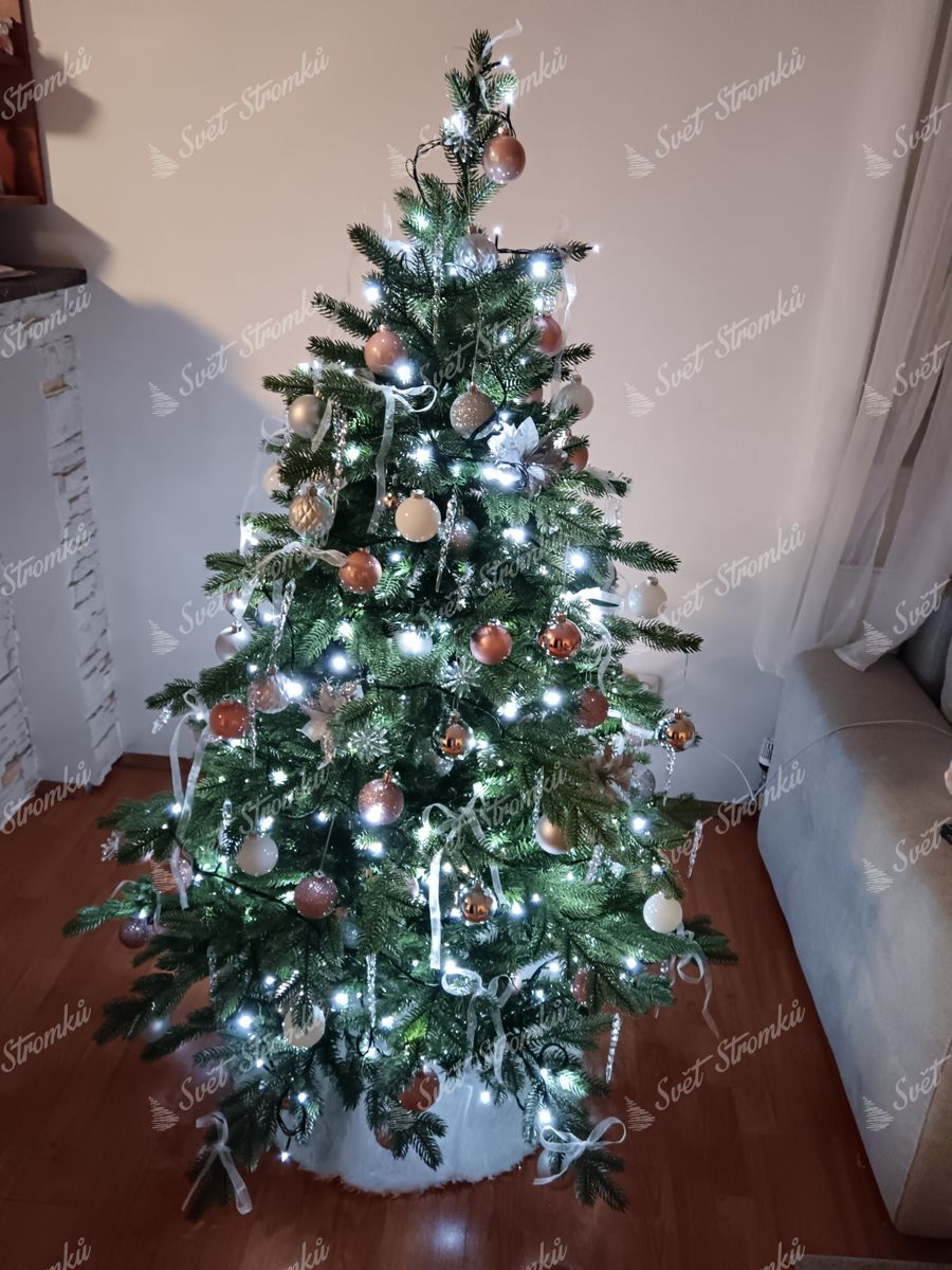 Strom se skládá ze dvou částí, vrchol je samostatný kus. Chvíli trvá, než rozložíte hlavní větve, pak vyřešíte boční větve (při troše opatrnosti asi půl hodiny) a stromek pak vypadá opravdu přirozeně a svěže. Vnitřní větve mají jednodušší (střižená stuha) povrch, ale to je vidět jen zblízka. Dostali jsme to, co jsme očekávali za peníze, bych doporučil. Doručení bylo nedohledatelné (nebylo možné zjistit, která kurýrní společnost ho doručí), ale nakonec dorazilo v uvedené lhůtě (2-7 pracovních dnů), 6 pracovních dnů ho doručila společnost MPL.