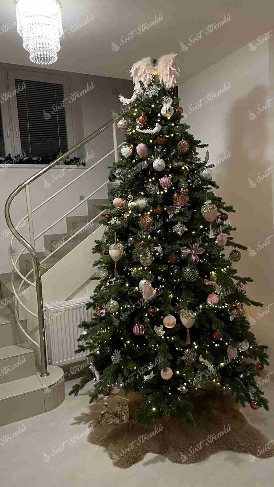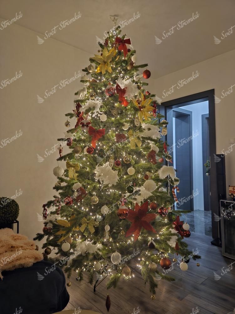 Po obvodu stromku jsou kombinovány větší a menší tmavě zelené 3D větvičky. Stromek se vyznačuje velkým počtem větviček. Kromě 3D větviček je vnitřek stromečku vyplněn klasickými PVC větvičkami, což zabezpečí hustý vzhled. Jedinečný vzhled 3D větviček a jejich kombinace a rozložení dělá tento stromek opravdu exkluzivním. Stromek je vyrobený z vysoce kvalitních materiálů.