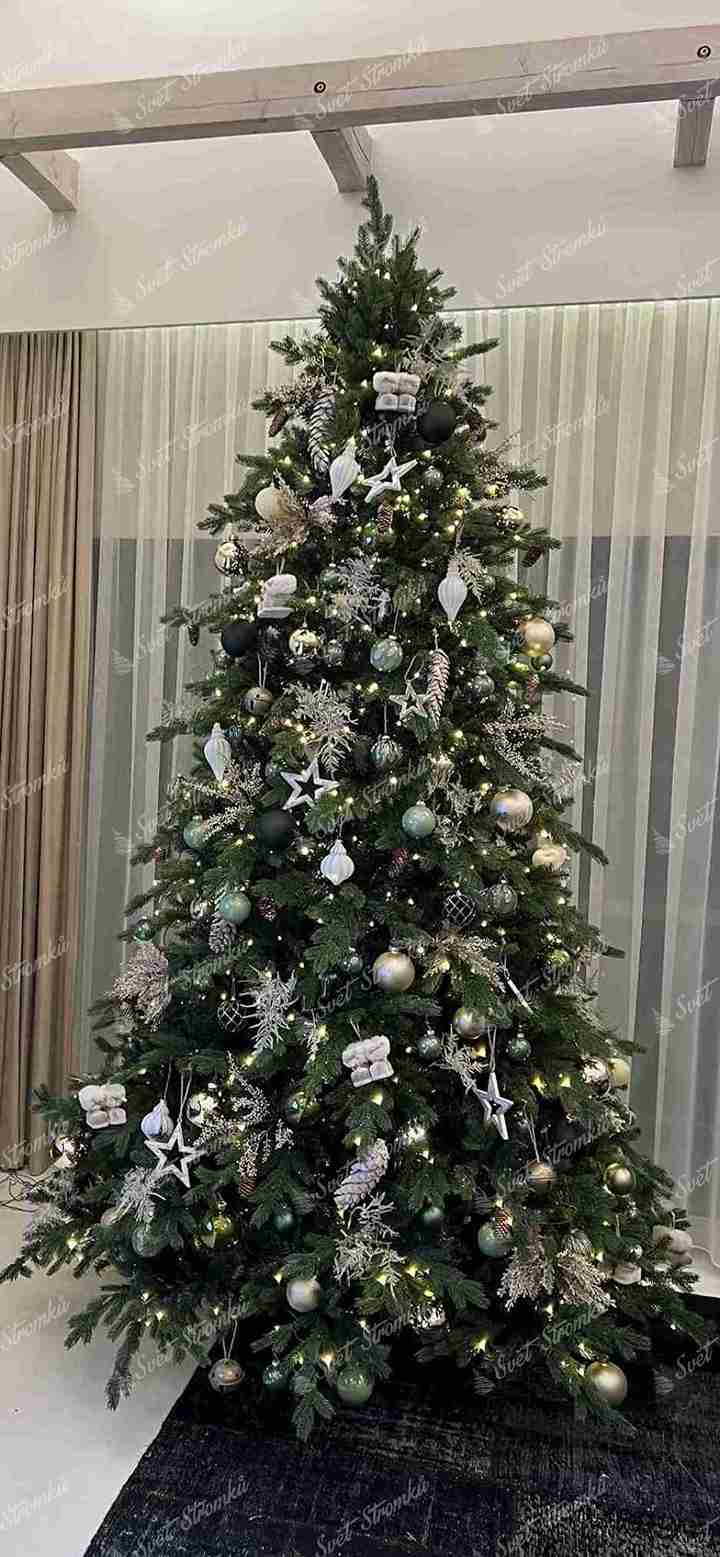 Po obvodu stromku jsou kombinovány větší a menší tmavě zelené 3D větvičky. Stromek se vyznačuje velkým počtem větviček. Kromě 3D větviček je vnitřek stromečku vyplněn klasickými PVC větvičkami, což zabezpečí hustý vzhled. Jedinečný vzhled 3D větviček a jejich kombinace a rozložení dělá tento stromek opravdu exkluzivním.