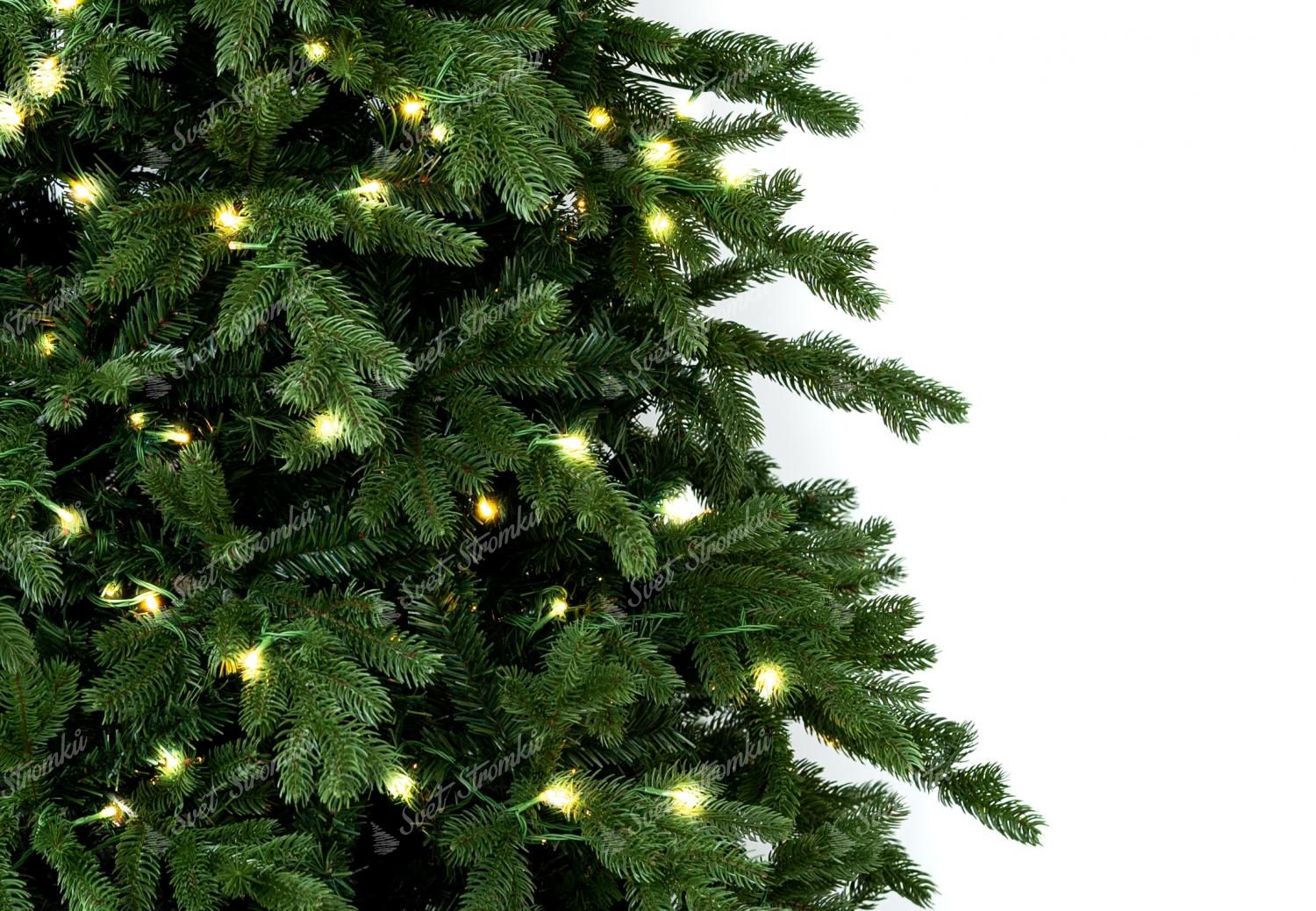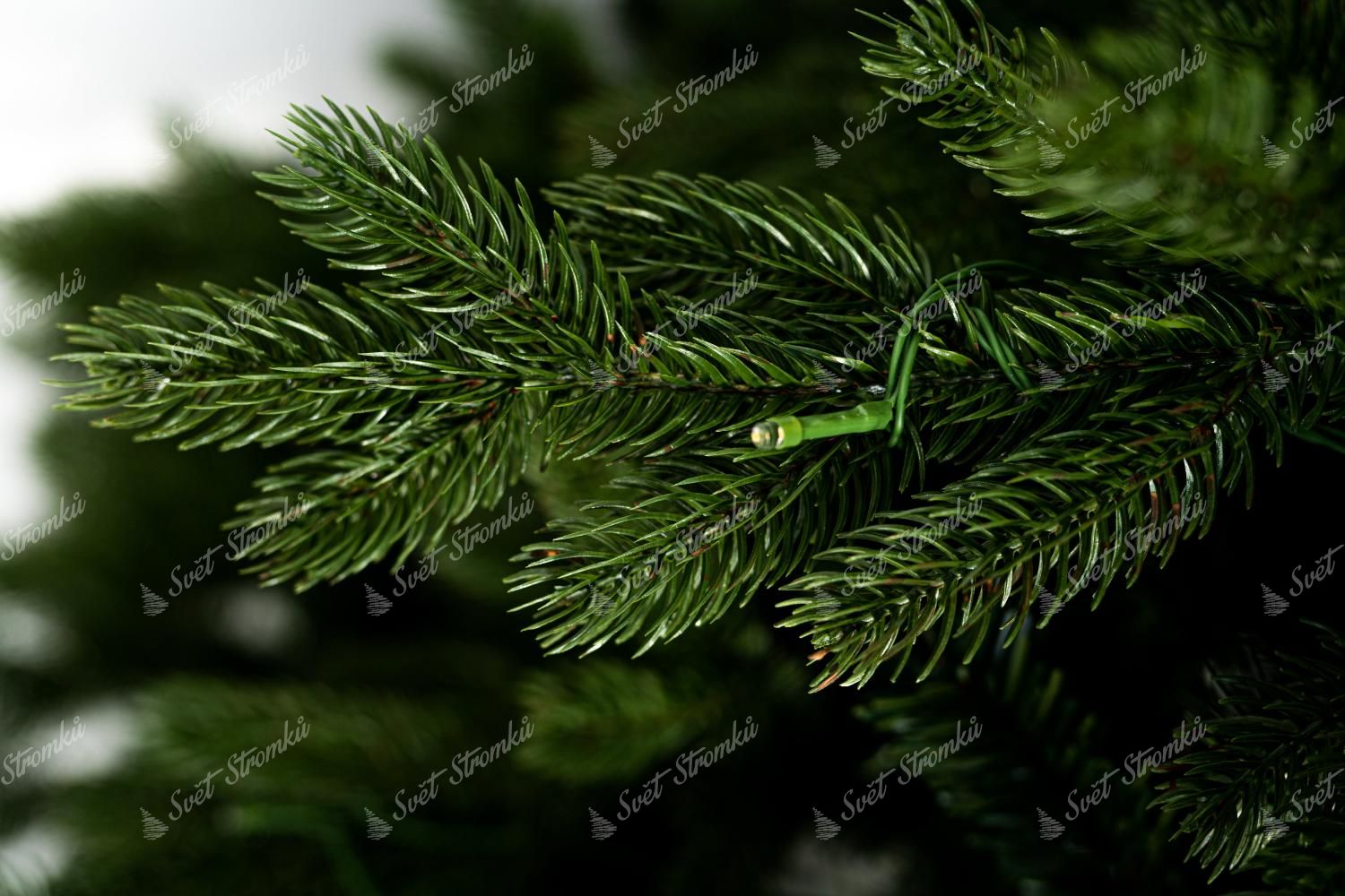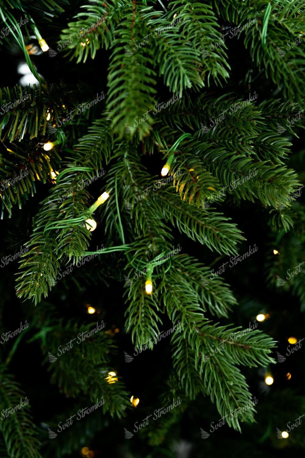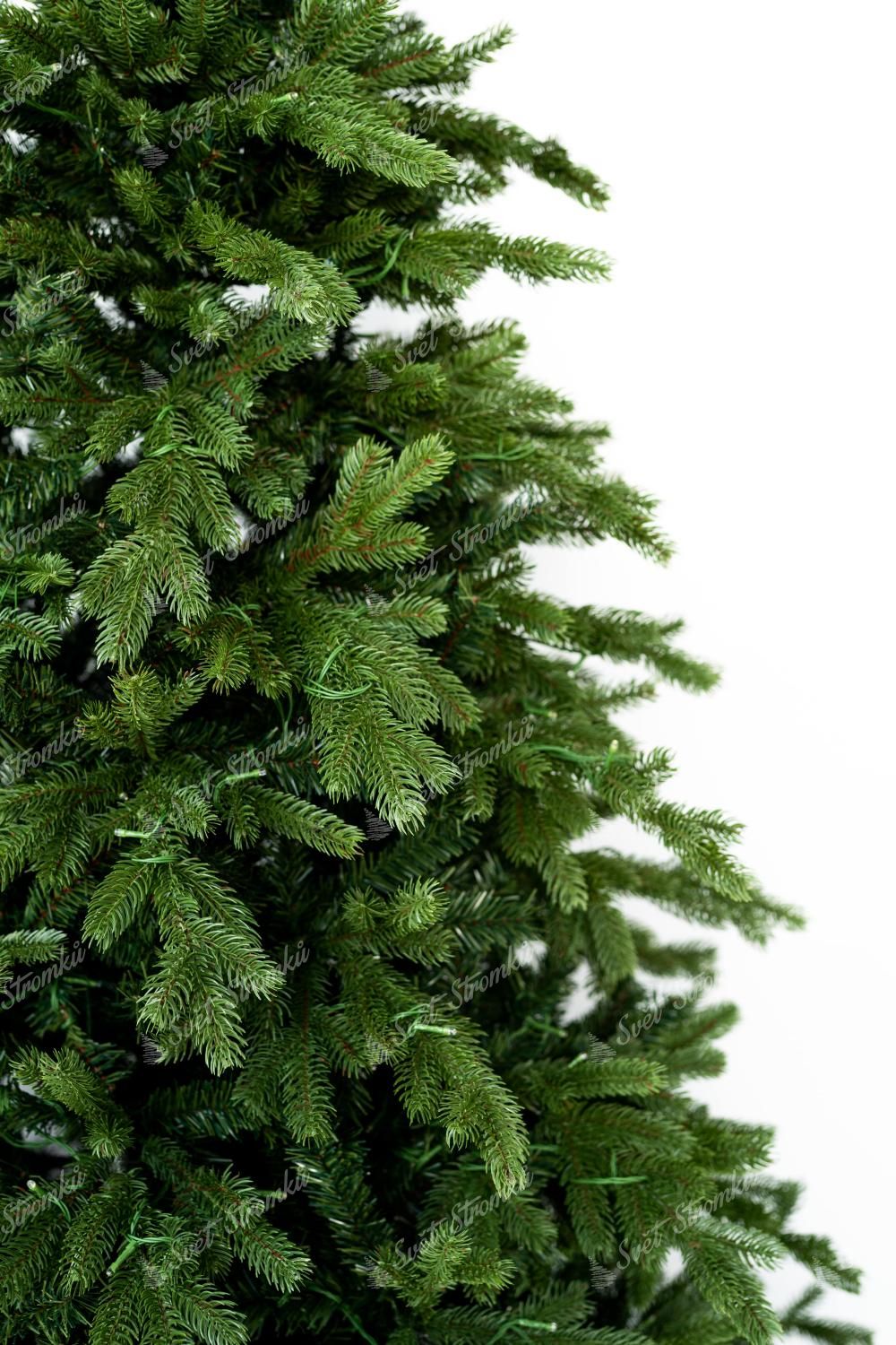 Po obvodu stromku jsou kombinovány větší a menší tmavě zelené 3D větvičky. Stromek se vyznačuje velkým počtem větviček. Kromě 3D větviček je vnitřek stromečku vyplněn klasickými PVC větvičkami, což zabezpečí hustý vzhled. Jedinečný vzhled 3D větviček a jejich kombinace a rozložení dělá tento stromek opravdu exkluzivním.