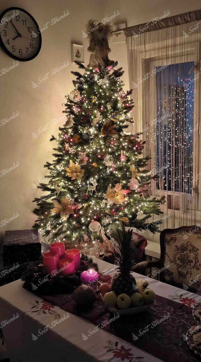 - stromek je uprostřed doplněn o klasické zelené PVC větvičky pro dosažení dokonale hustého vzhledu