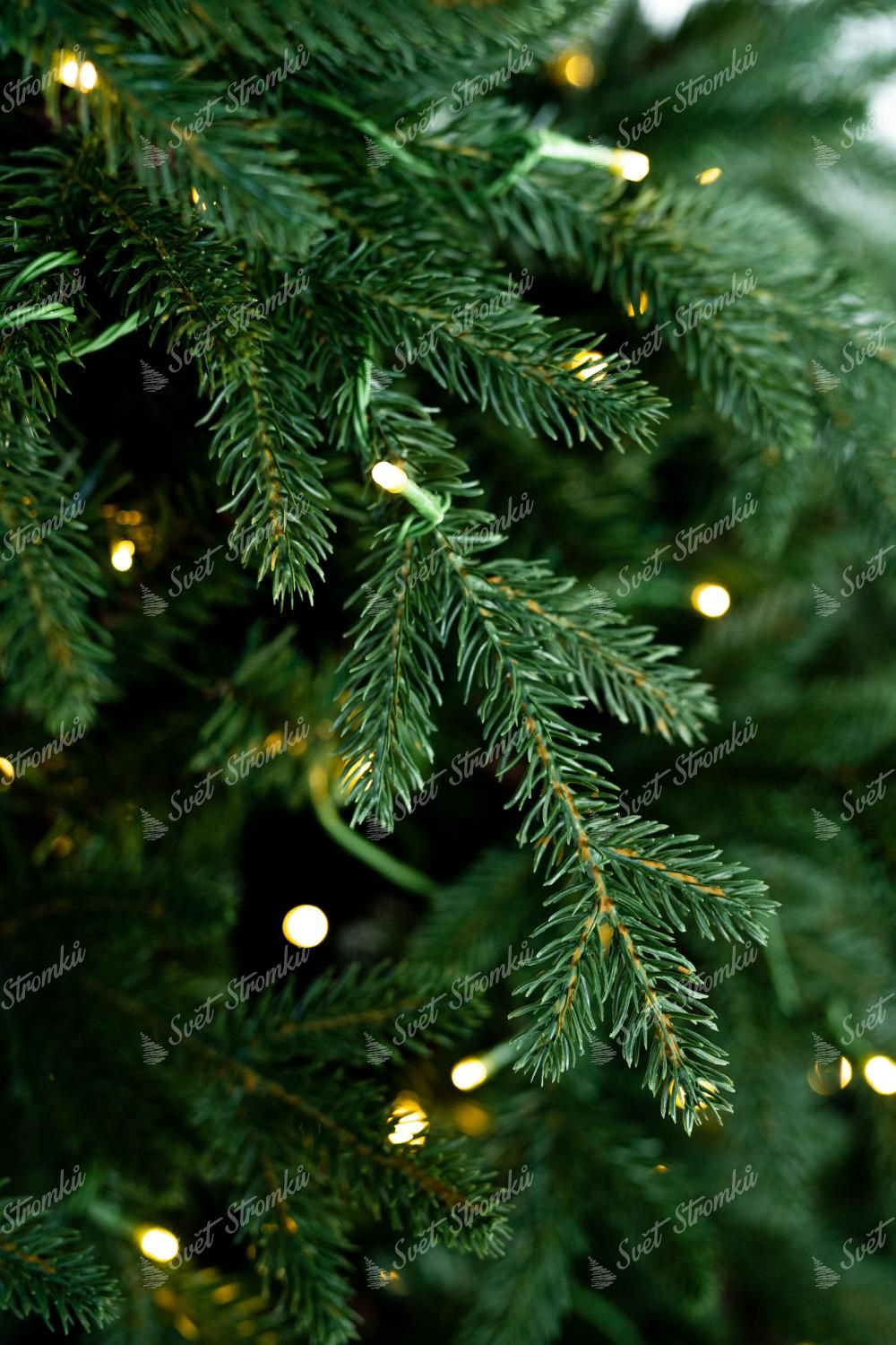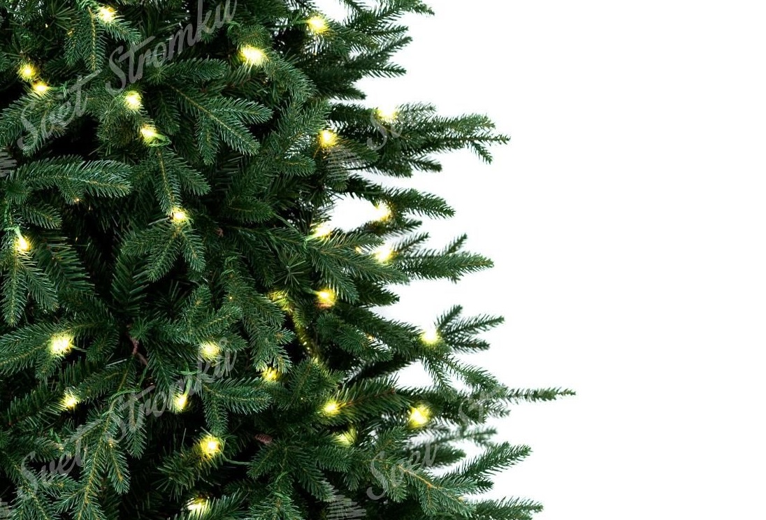 Na stromku je zabudované (předmotané) LED osvětlení teplé bílé barvy. Díky tomu víc nemusíte ztrácet čas nekonečným věšením vlastního osvětlení na stromeček. Počet LED světélek záleží na velikosti stromku.