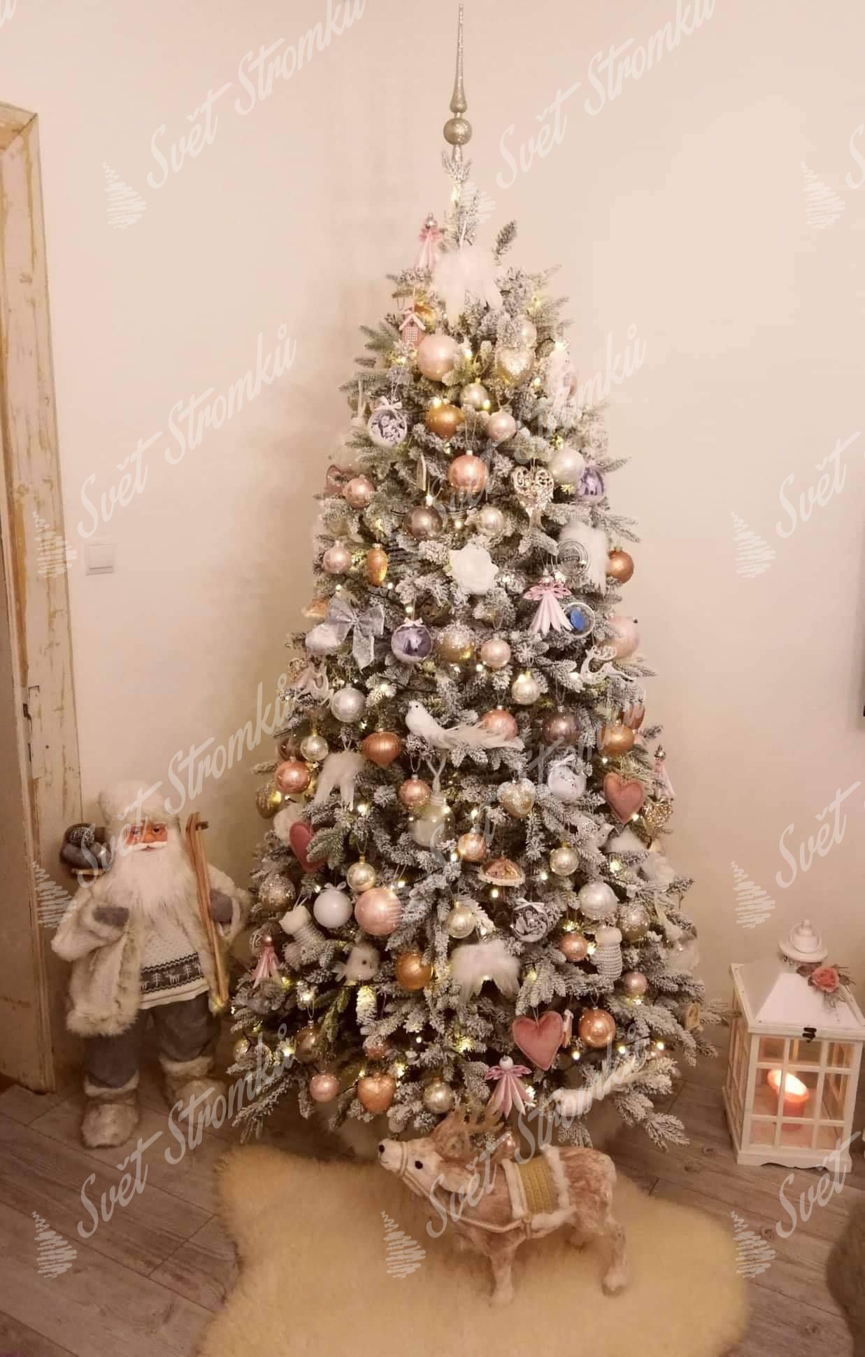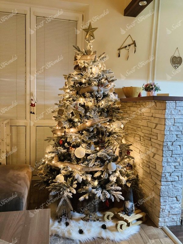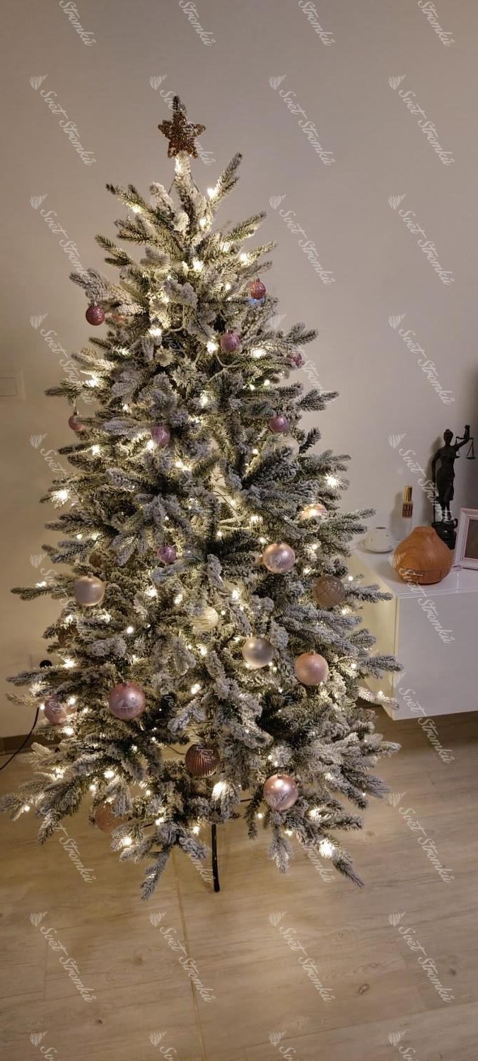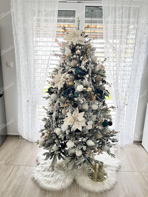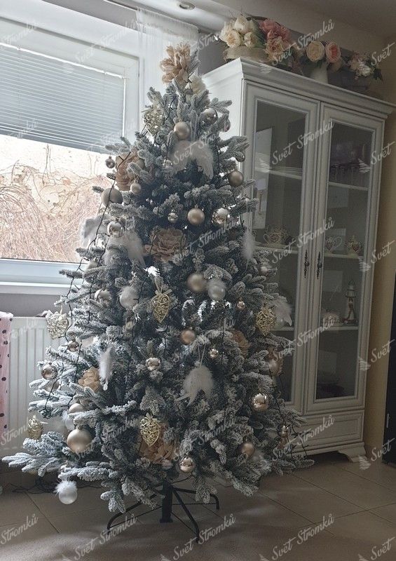 3D jehličí po celém obvodu stromku je doplněno o klasické PVC jehličí, které je hustě zasněžené. Nejmodernější systém aplikování umělého sněhu na stromeček zaručuje, že sníh neopadává. Stromek ma pevnou železnou konstrukci a stabilní kovový stojan, který je součástí balení.