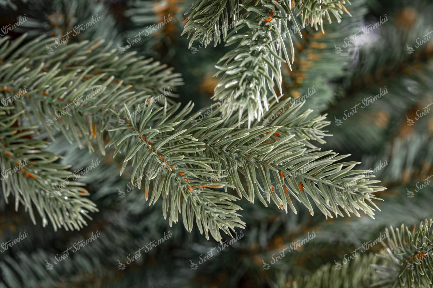 - smrkové 3D jehličí jedinečné ledově-stříbrné barvy