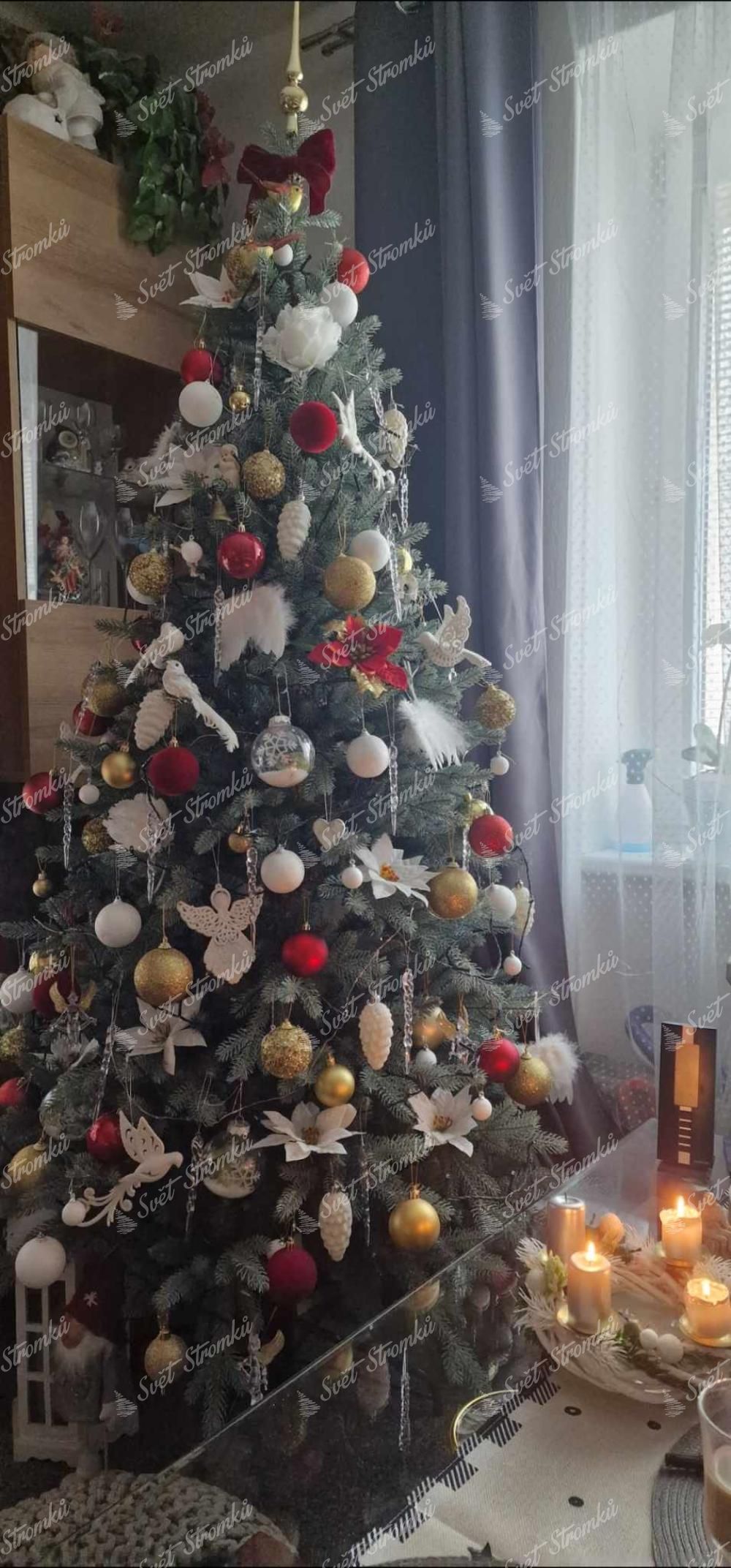 - stromek je uprostřed doplněn o klasické zelené PVC větvičky pro dosažení dokonale hustého vzhledu