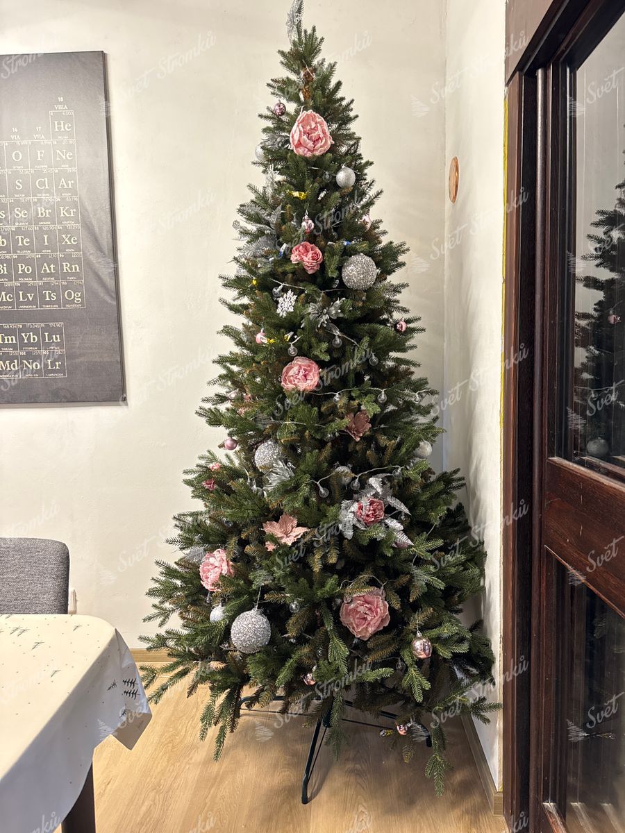 Realisticky vypadající 3D větvičky jsou uprostřed stromečku doplněné klasickými PVC větvičkami, což zabezpečuje hustotu stromečku. Celý stromek je vyroben z kvalitních materiálů.