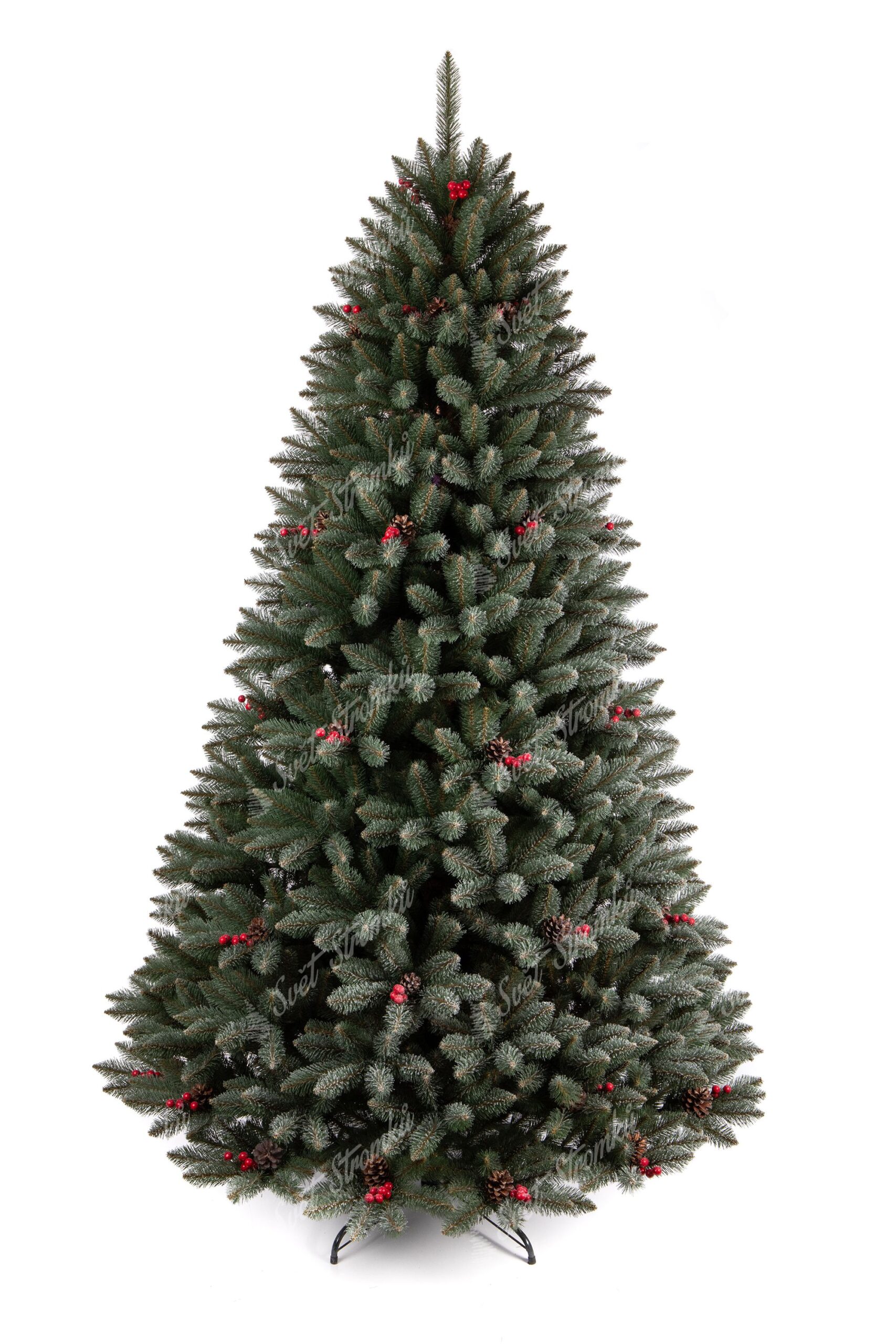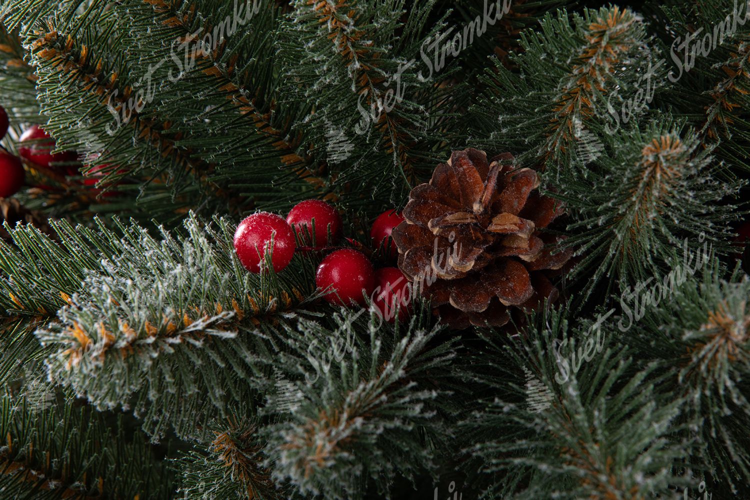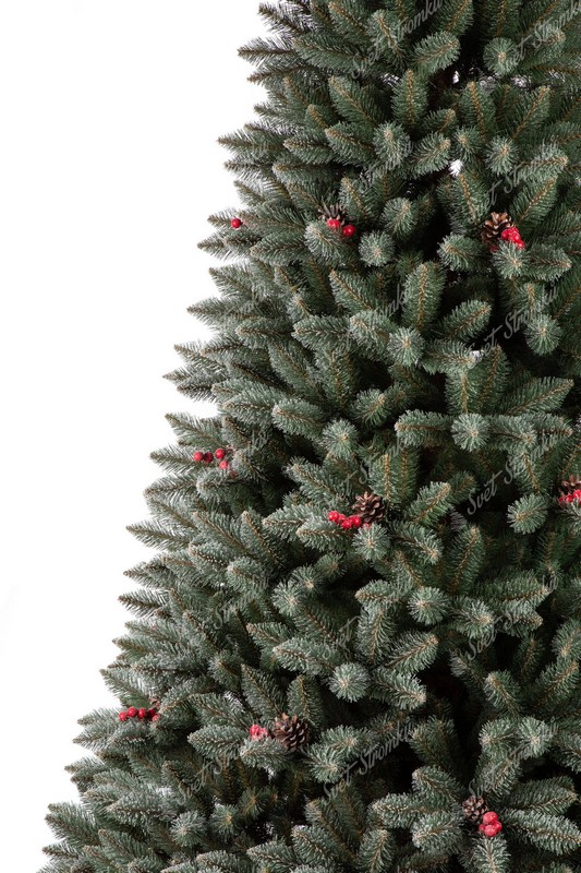 Smrk Krišťálový je NOVINKOU sezóny 2019. Vyznačuje se propracovaným úzkým tmavozeleným PVC jehličím které je pokryto jemnými bílými chomáčky připomínajícími krystalky ledu. Větvičky jsou na koncích doplněné o pravé šišky a lesní plody, které stromku dodávají dokonalý realistický vzhled.