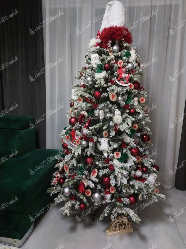 • přirozeně zelený smrk s hustě zasněženými konci větviček