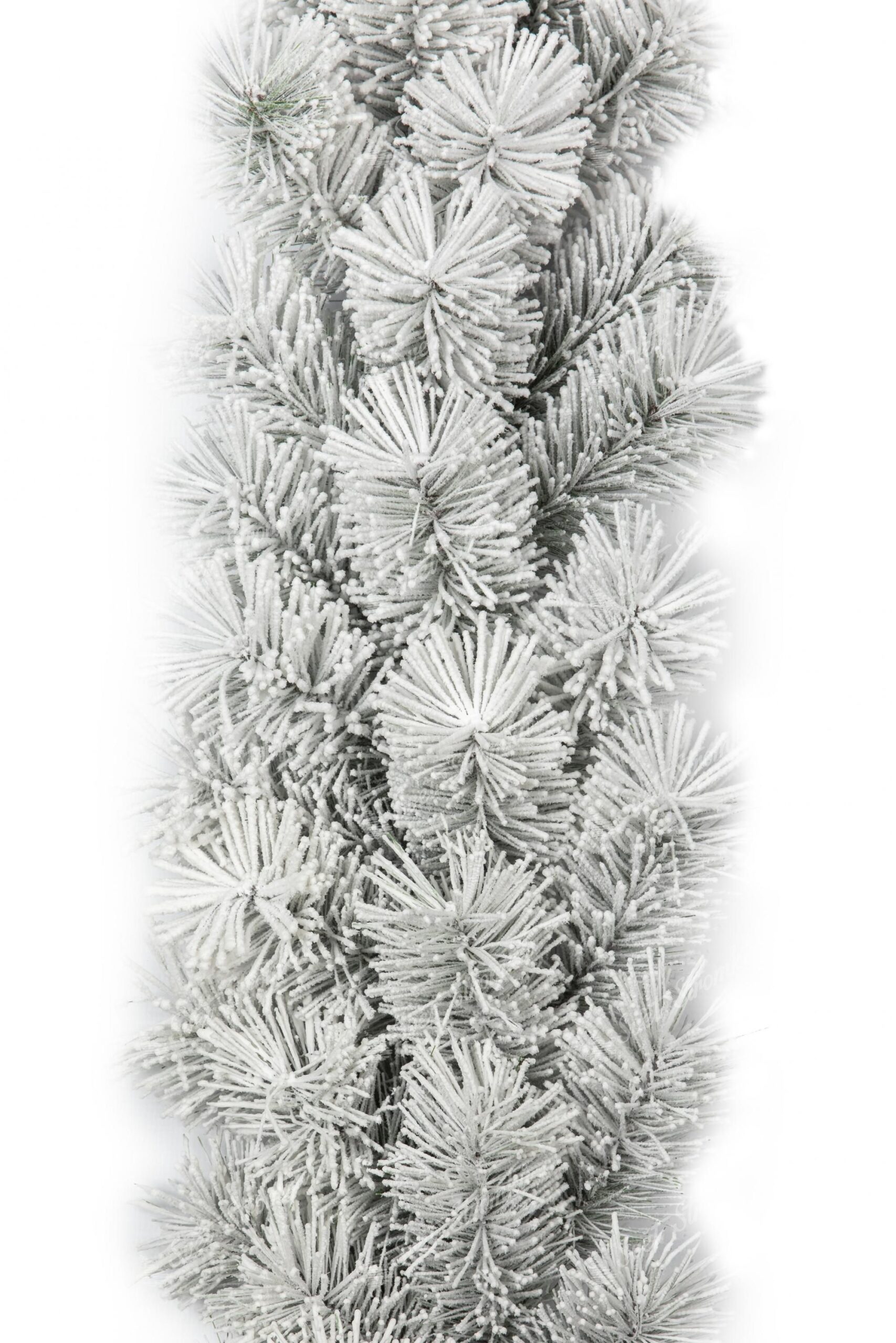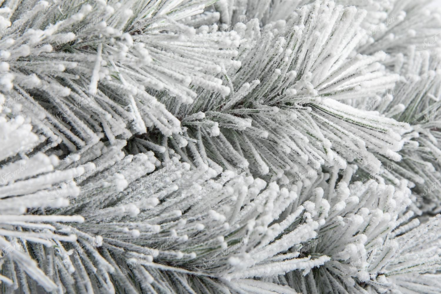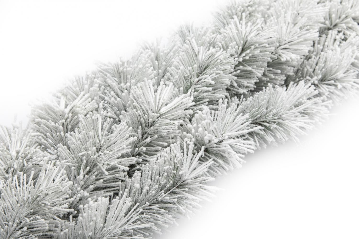 Girlanda je tvořena hustě zasněženými borovými PVC větvičkami. Hustý nános umělého sněhu na větvičkách je k nerozeznání od toho pravého.