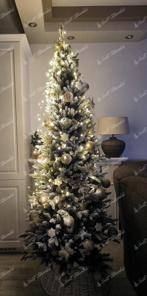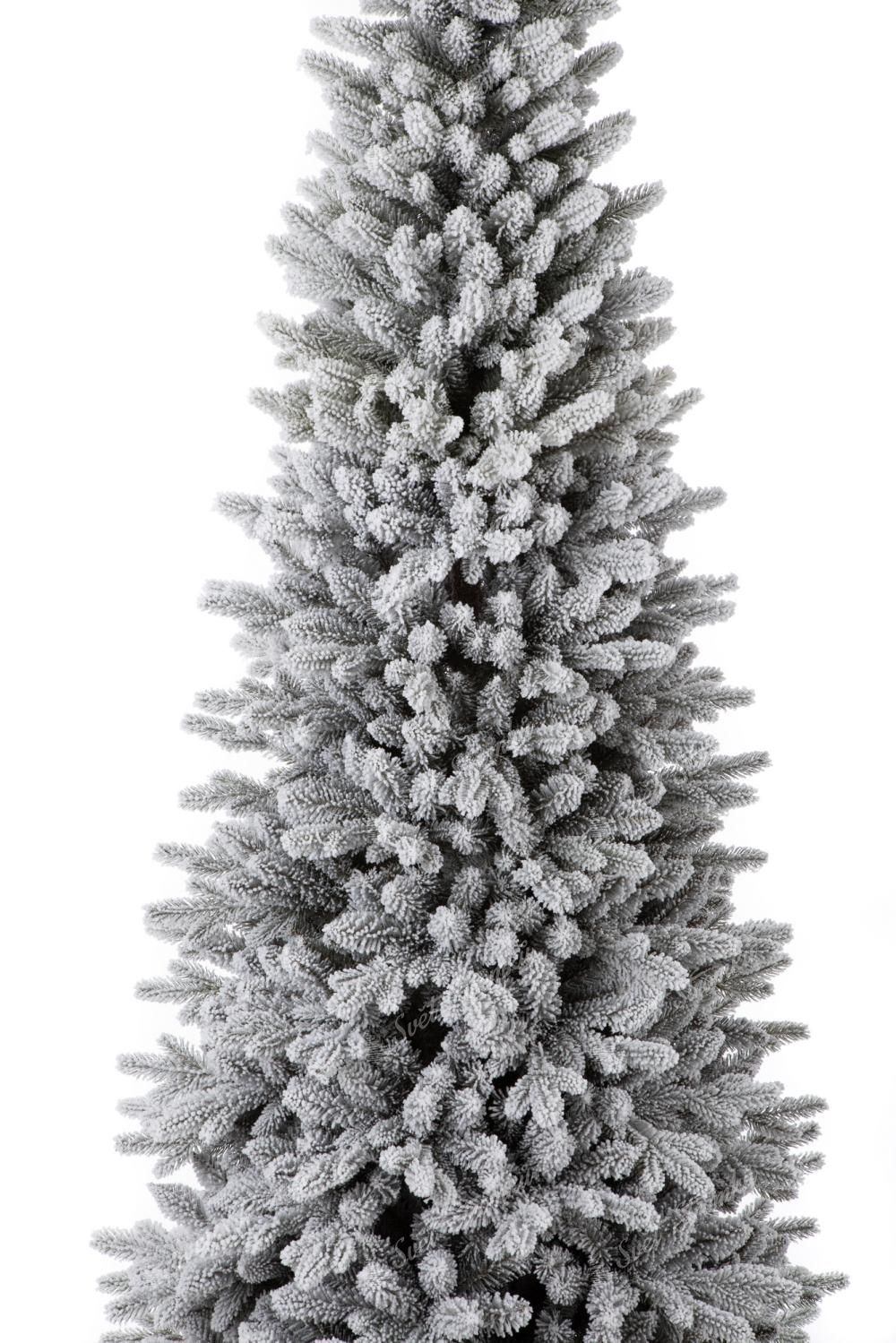 Stylový vánoční stromek, 3D Smrk Královský Štíhlý, je užší verzí jednoho z našich nejoblíbenějších zasněžených vánočních stromků – 3D Smrku Královského. Tento úzký, zasněžený 3D stromek má jedinečný ledový vzhled a tvar dokonalého jehlanu. Můžete ho použít na vánoční výzdobu stísněných prostor, právě pro jeho úzké rozměry.