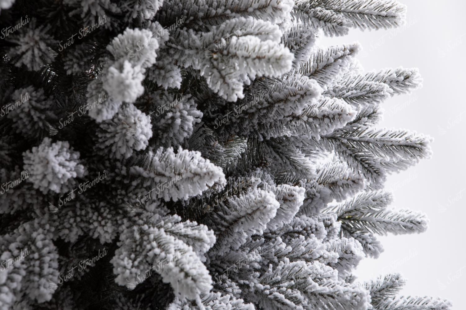 Jeho bílo-zelenavé větvičky okouzlí snad každého, kdo touží po královsky ledových Vánocích. 3D jehličí po celém obvodu stromku je doplněné o klasické PVC jehličí, které je hustě zasněžené. Nejmodernější systém aplikování umělého sněhu na stromek zaručuje, že sníh neopadává.