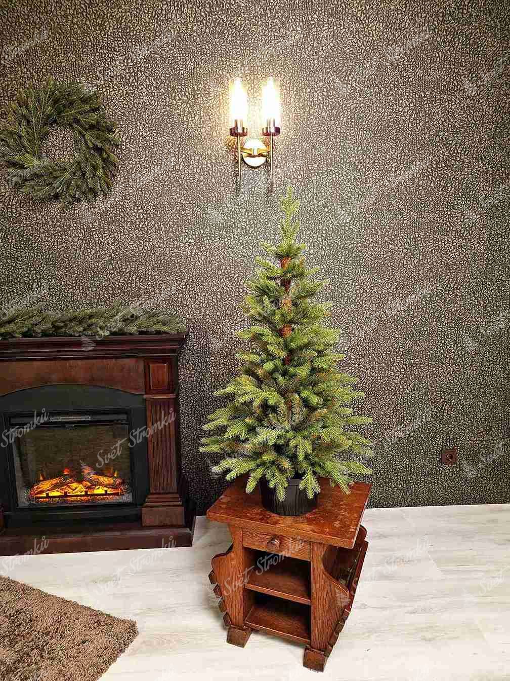 Umělý vánoční stromek 3D Smrk Přírodní v květináči je uprostřed zahuštěný klasickými PVC větvičkami, díky čemuž má plnější a dokonalý vzhled. Celý stromek je vyroben z vysoce kvalitních materiálů a vsazen je do moderního květináče z pytloviny. Stromeček je ideální do malých prostorů, či jako dekorace na chodbu, do předsíně či dětského pokoje.