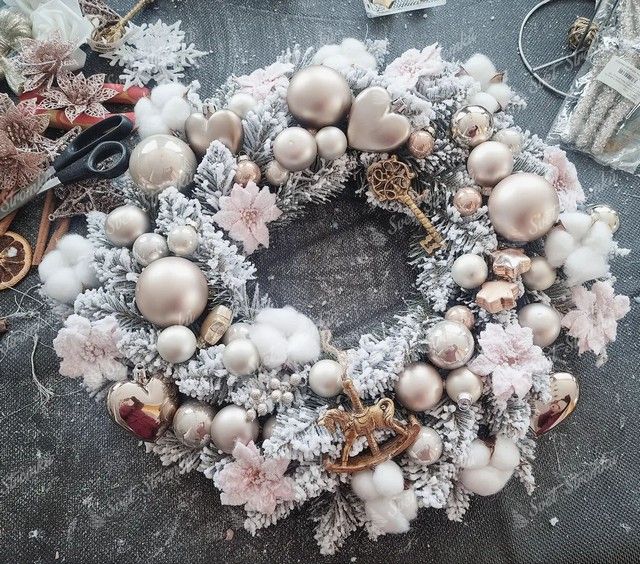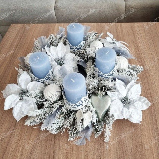 Věnec ma průměr 50cm a dodává se již v rozloženém stavu. Tento bílý vánoční věnec je vhodný jako dekorace na stůl, dveře a také může zkrášlovat vaši zeď či krb.