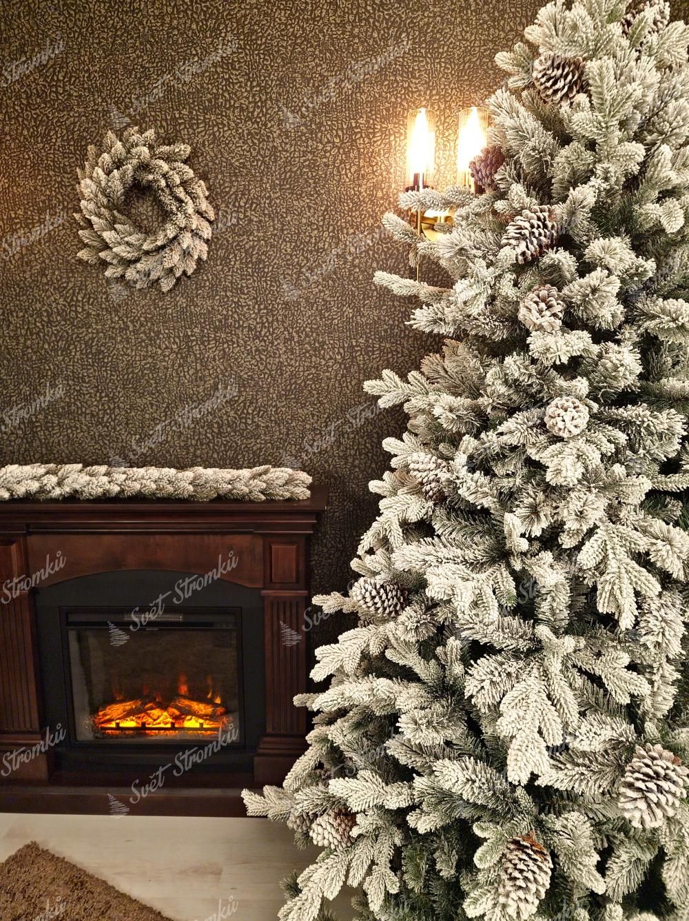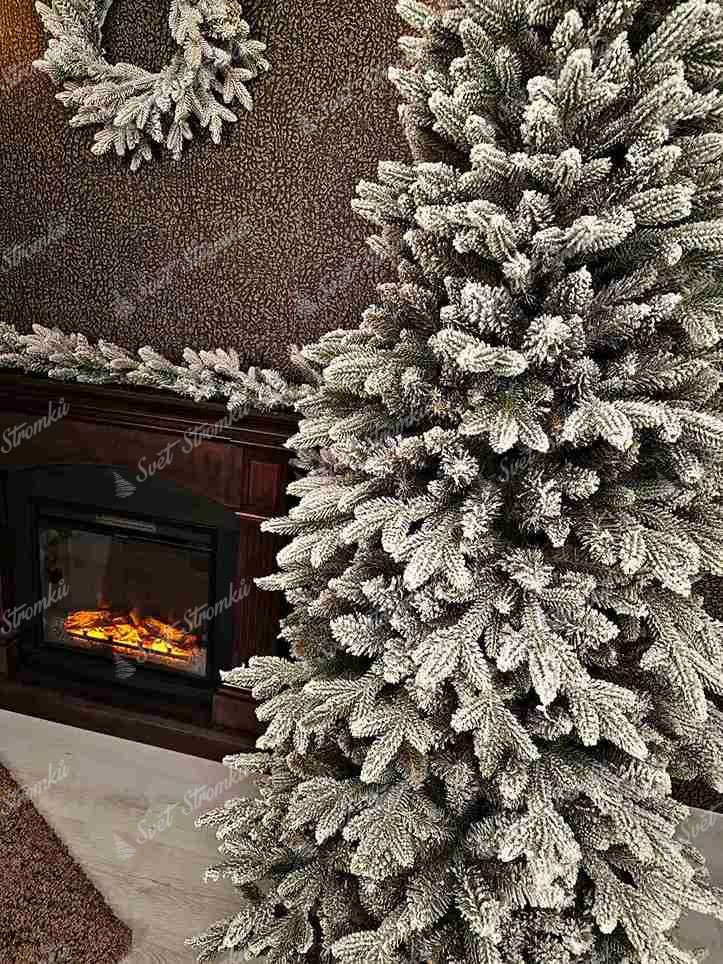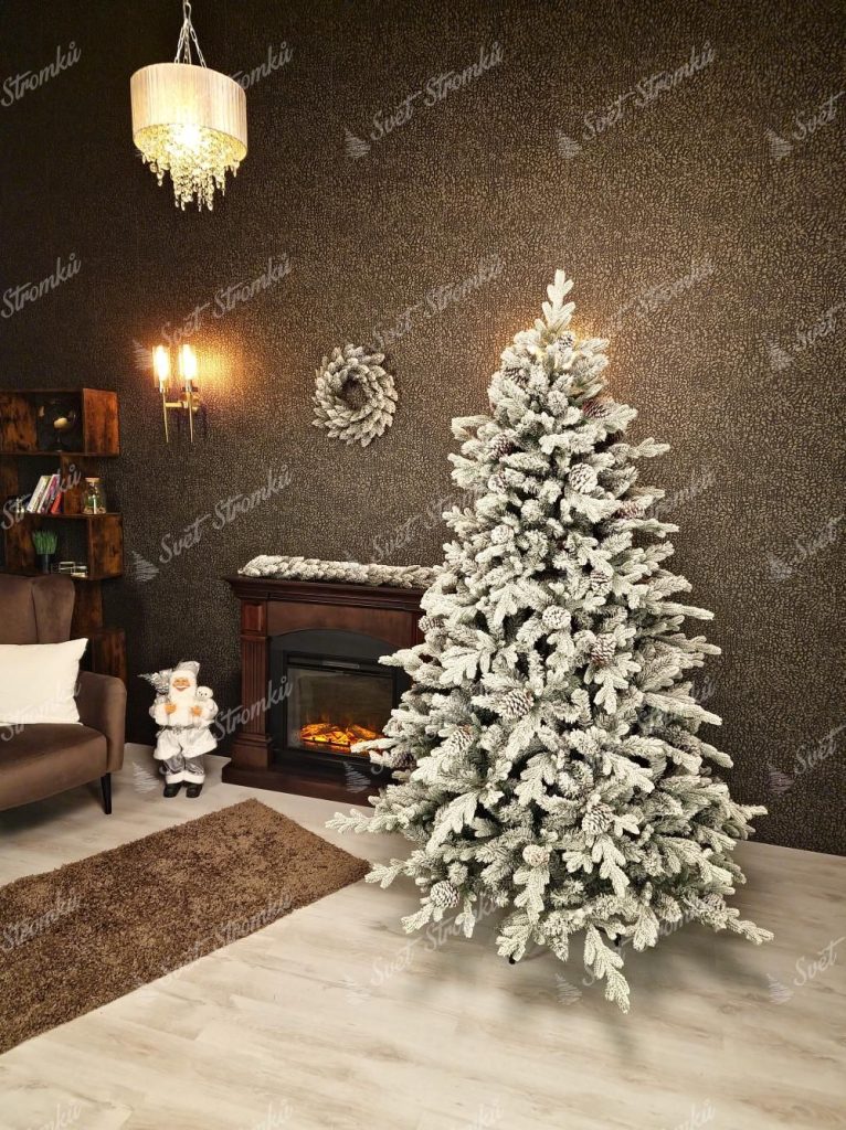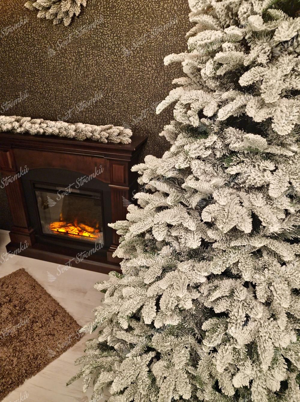 Umělý sníh má autentický vzhled a dokonale imituje skutečnou sněhovou pokrývku, čímž navozuje pocit, jako byste si stromeček právě přinesli ze zasněženého prostředí.