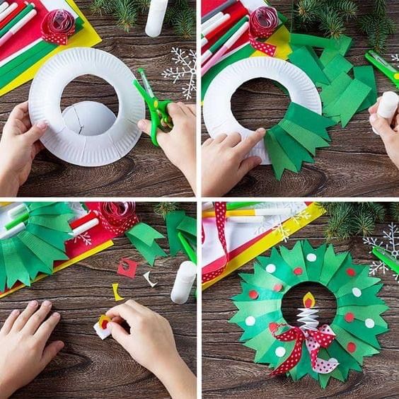 Když se řekne vánoční věnec, každý si víceméně vybaví ten z jehličnatých větviček. Ale s dětmi si ho můžete jednoduše vyrobit i z barevných papírů, lepidla a papírového talíře. Ze světle a tmavě zelených papírů nastříhejte proužky a z talíře vystřihněte dno. Pomocí lepidla pak nalepte proužky na talíř do žádaného tvaru, dozdobte podle uvážení a na konec přidejte mašli. Krásný a nepřehlédnutelný vánoční věnec je na světe a můžete ho umístit na stůl do obýváku nebo do dětského pokoje a taky se hodí na interiérové dveře.