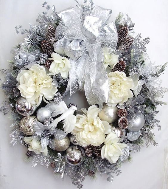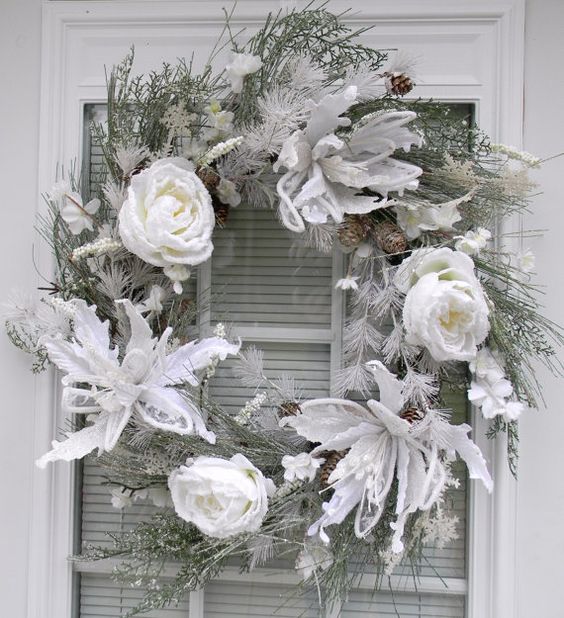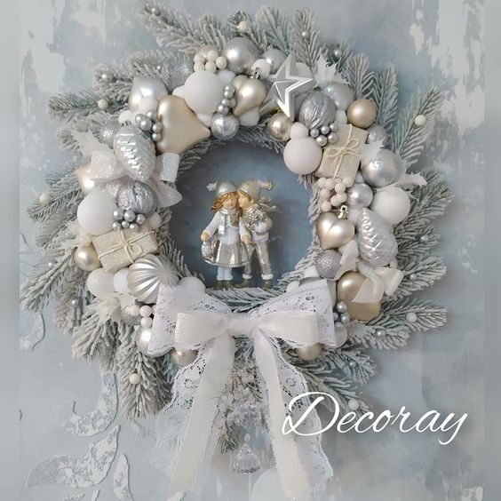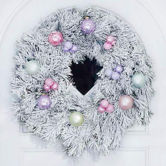 Stejně jako zasněžené vánoční stromky, i zasněžené bílé vánoční věnce na dveře se těší velké oblibě. A co když bílý vánoční věnec ještě ozdobíme bílými ozdobami? Vznikne z toho dokonalá zimní výzdoba. Bílé vánoční ozdoby můžete zkombinovat s menším počtem ozdob ve stříbrné nebo krémové barvě, a zaručujeme vám, že se budete cítit jako v pohádkovém, ledovém království. Kdyby to však bylo na vás příliš mnoho bílé, můžete na tenhle moderní vánoční věnec na dveře upevnit pár vánočních koulí v jemných, pastelových odstínech.