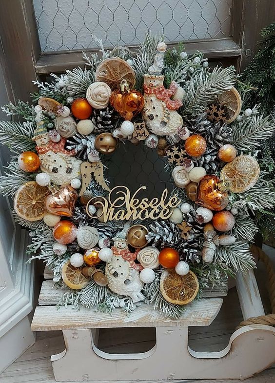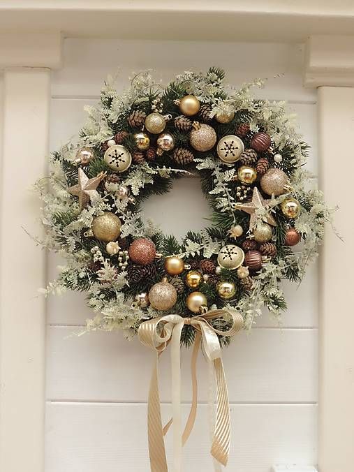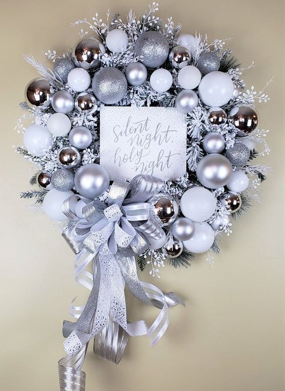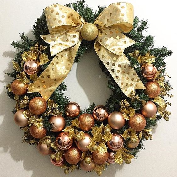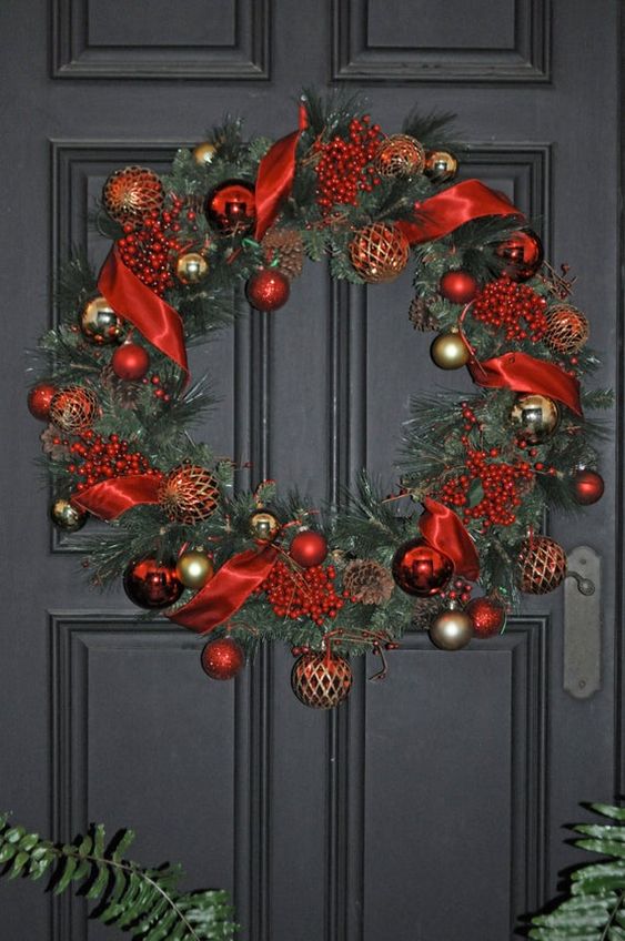 Pokud máte doma spoustu vánočních koulí které nepoužíváte k výzdobě vánočního stromku, můžete je jednoduše použít na ozdobení vánočního věnce na dveře. Koule můžete na věnec připevnit opravdu nahustě a tak už nebudete potřebovat žádné jiné ozdoby. Takový moderní vánoční věnec na dveře z koulí krásně ukáže, když na něj připevníte mohutnou mašli ze stuhy.