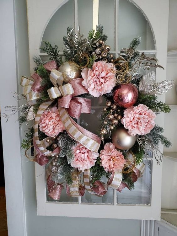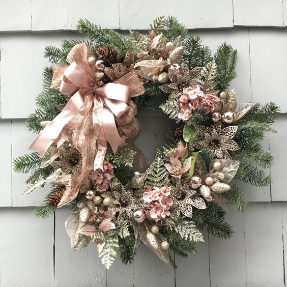 Jemná, růžová barva, je během Vánoc stále více oblíbená. Růžové vánoční ozdoby krásně ukáží jak na bílých, zasněžených vánočních věncích, tak i na klasických zelených věncích. Na čistý vánoční věnec jednoduše připevněte růžové vánoční ozdoby. Můžete zvolit růžové koule, květiny, či stuhy, ale také různé dekorace ve tvaru ptáčků, srdíček či andílků. Růžové dekorace doporučujeme kombinovat s ozdobami stříbrné, bílé, ale také zlaté barvy.