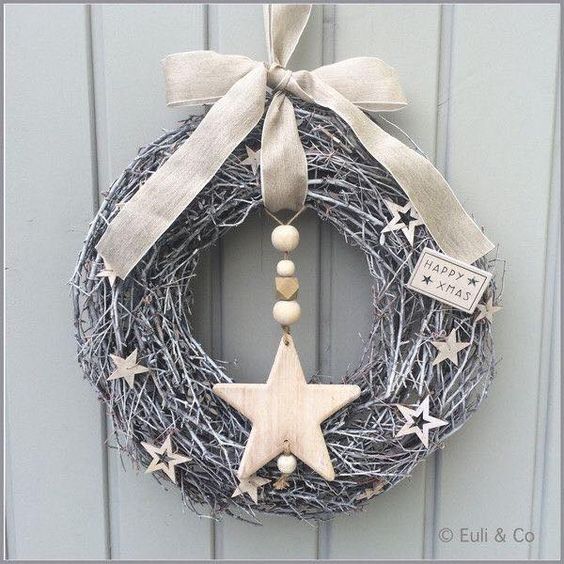 Vaše vchodové dveře krásně ozvláštní moderní vánoční věnec z proutí. Proutí může být různé barvy a naaranžováno různými způsoby, jak můžete vidět na obrázcích níže. Jednoduchý vánoční věnec na dveře z proutí vypadá krásně, když je dozdoben různými stuhami, šiškami, ale i malými vánočními koulemi či chvojím. Vánoční ozdoby na věnec můžeme na věnec připevnit sami pomocí tavicí pistole. Věnec vypadá hezky z tenkého i hrubšího proutí. Záleží jen na vašich preferencích.