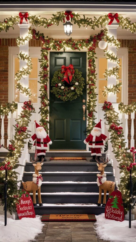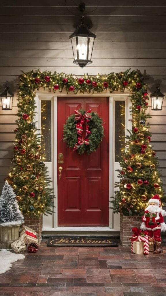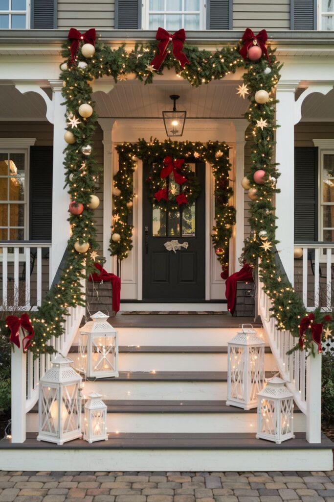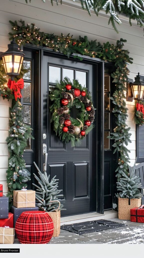 Jednou z nejkrásnějších dekorací, které můžete využít ve výzdobě před vchodovými dveřmi, je vánoční girlanda. Dá se použít pro různé způsoby. Skvěle vynikne, lemuje-li rám dveří a zvýrazní vstup, nebo ji můžete omotat kolem zábradlí či sloupů.